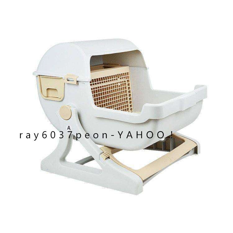 【大容量・簡単お手入れ】猫トイレ 大型 半密閉タイプ 全年齢対応 スコップ不要 衛生的 樹脂製 高耐久性
