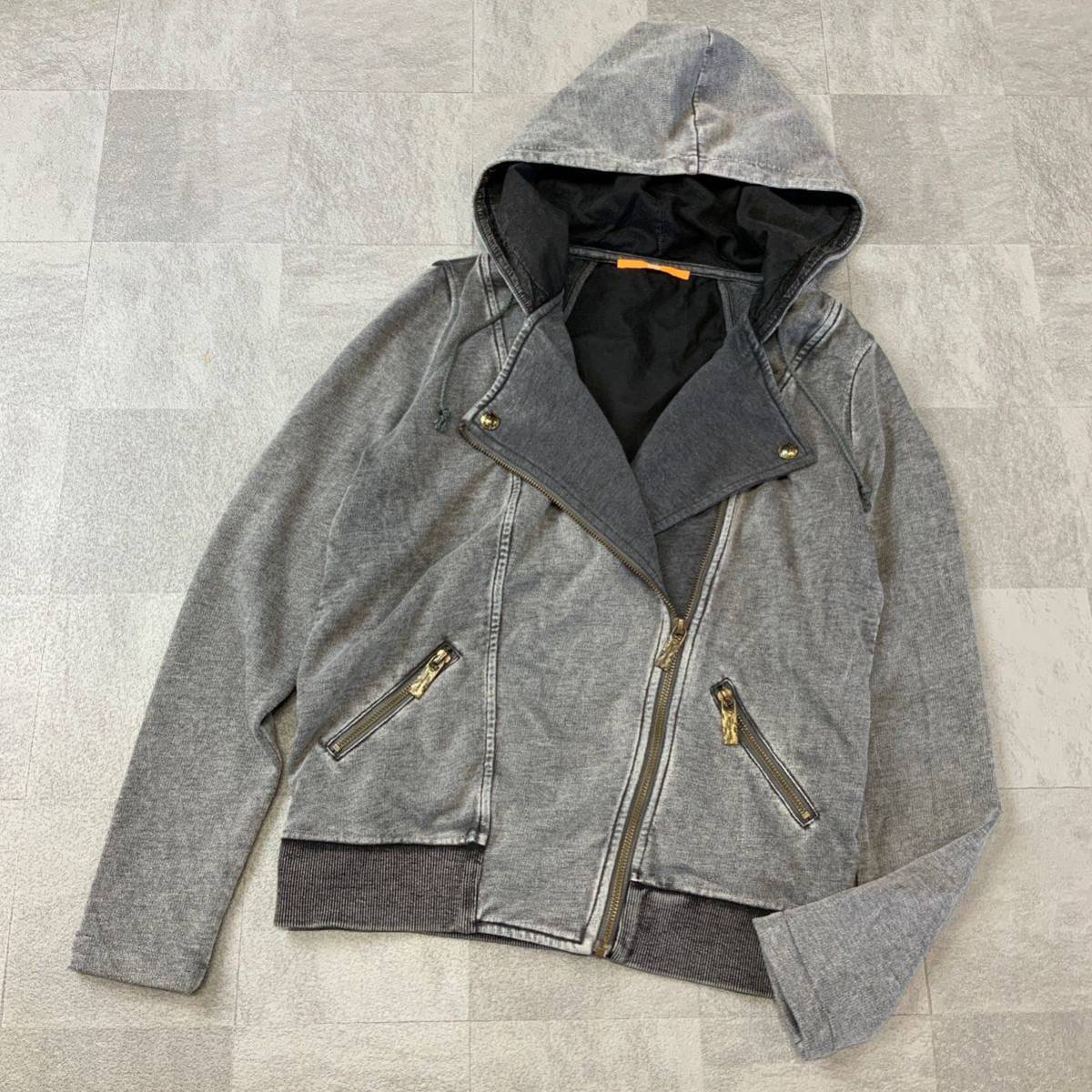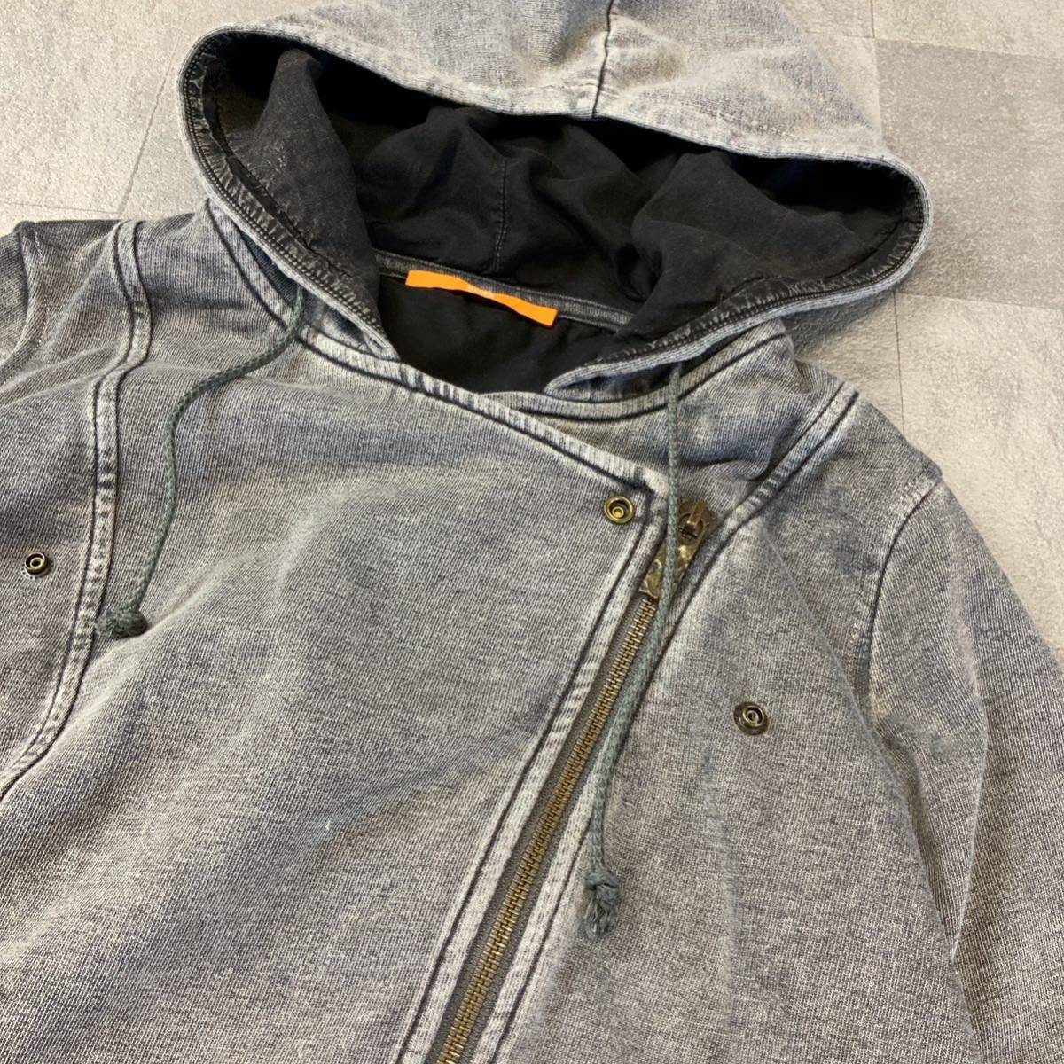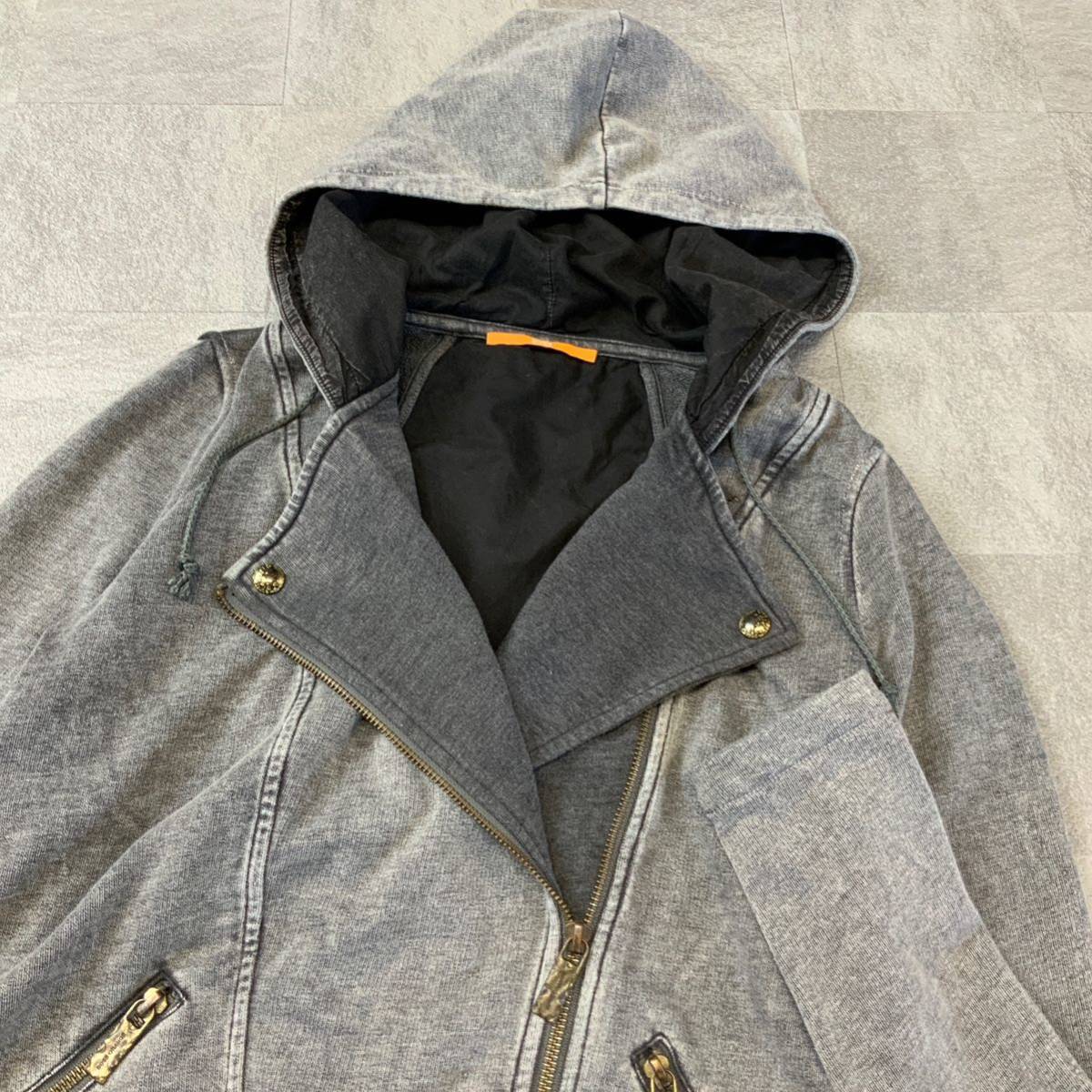 【抜群なシルエット】美品 HUGO BOSS ヒューゴボス ライダース パーカー メンズ XSサイズ グレー スウェットパーカー