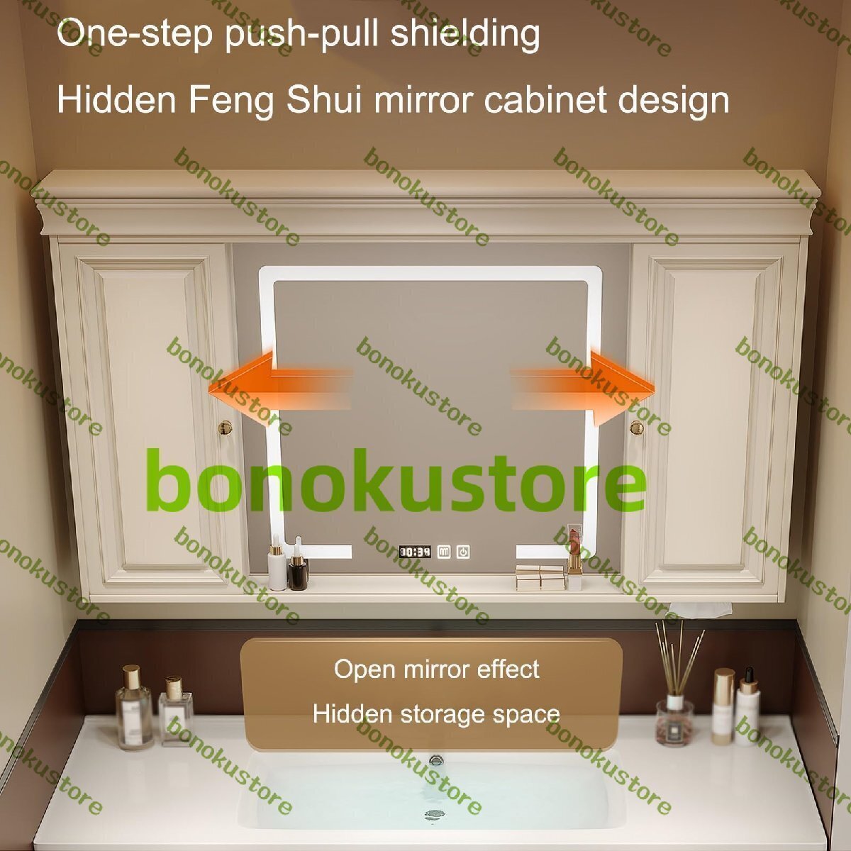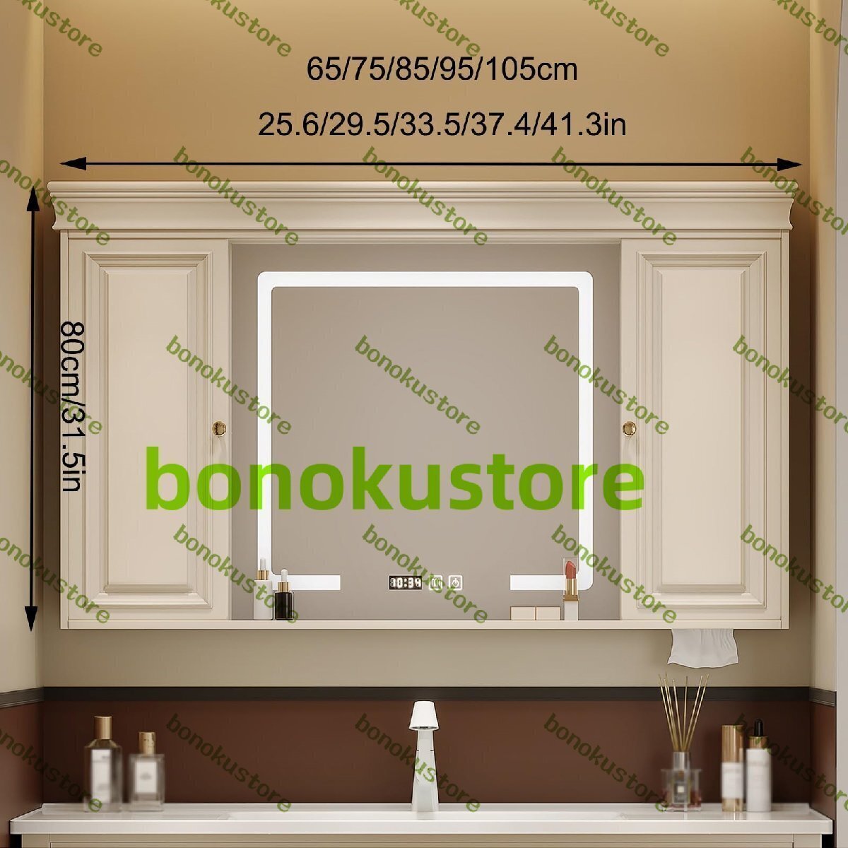 ^^ 製品の詳細を見つけることが私たちの目標です。お客様の上品なテイストを満足させ、生活の質を向上させます。このミラーキャビネットはあなたにとって良い選択です!?? 健康的で環境に優しい??多層の無垢材で作られ、焼き付けニス加工が施されており、素材は環境に優しく、木材は硬くて無臭で、構造は安定しており、湿気を恐れません。?? 科学的な収納??使用頻度に応じてアイテムをさまざまな場所に配置し、頻繁に使用するアイテムは手の届くところに置き、使用頻度の低いアイテムは防塵方法で保管します。?? 引き戸設計??ミラーを開くと収納が隠れ、ドアを閉めると風水の反射の問題を防ぎます。^^ 仕様:- 名称: 多機能スマートミラーキャビネット- 材質: 無垢材- 色: ベージュ- スタイル: モダンでシンプル- ミラーライト付き: あり- 機能: 時間表示、曇り止め、照明- 製品サイズ: 測定サイズに応じて対応するサイズを選択し、サイズ表を参照してください