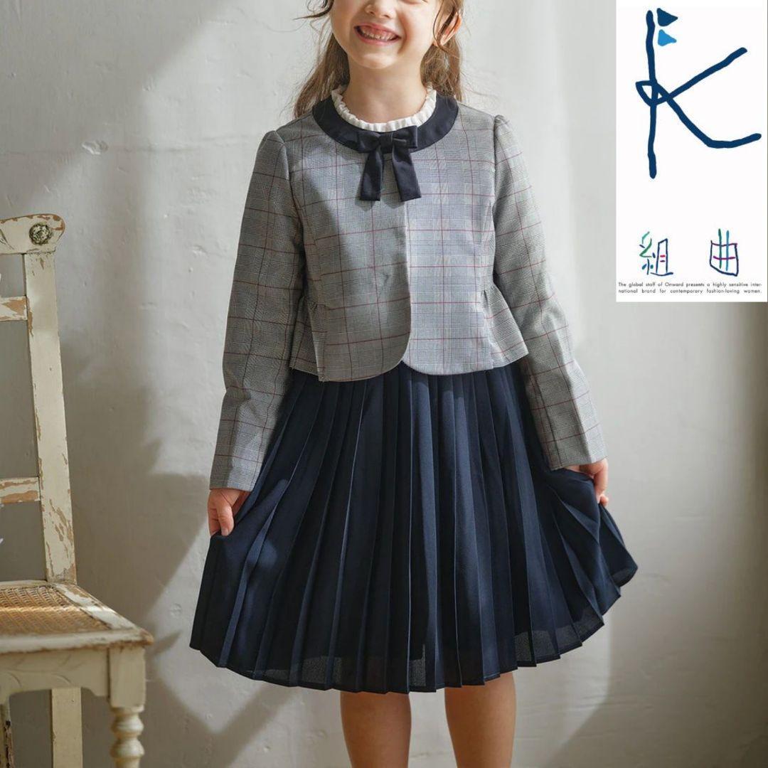 ・組曲のグレンチェックジャケット&プリーツワンピースセットです。