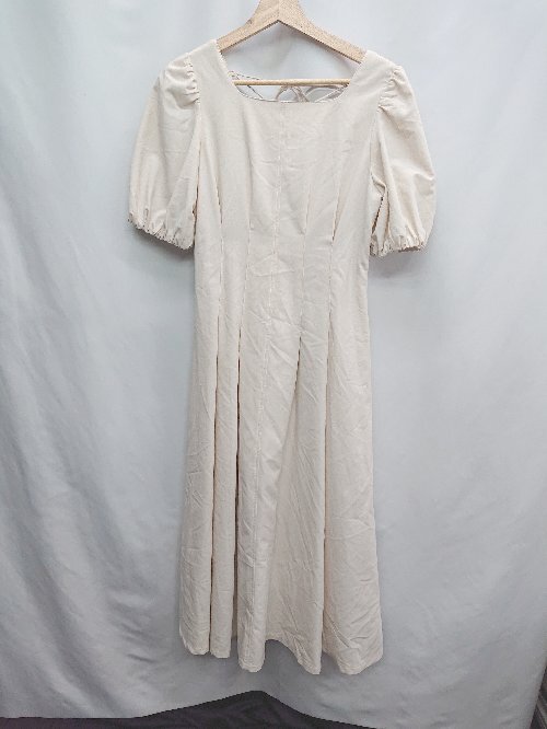 ◇ Θ LILLIAN CARAT リリアンカラット 無地 半袖 膝下丈 ワンピース サイズ2 ベージュ系 レディース E
