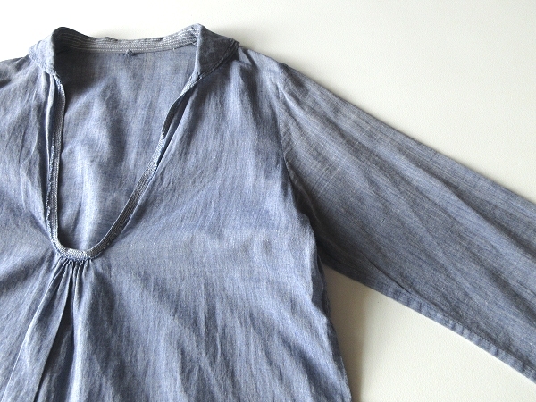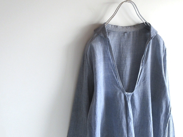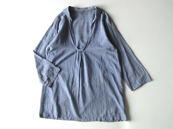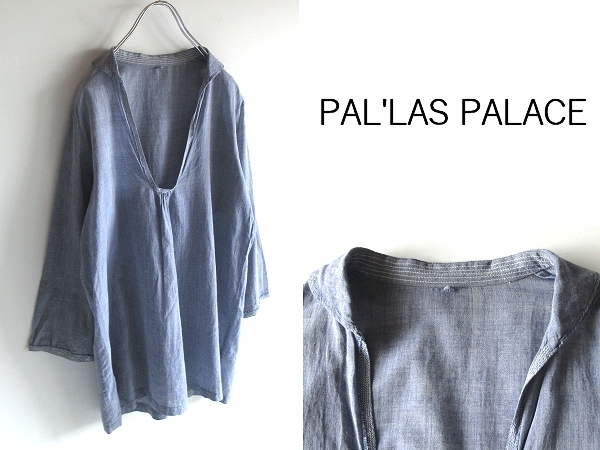 ネコポス対応 Pallas Palace パラスパレス コットン 深Uネック プルオーバーシャツ ブラウス チュニック 3 ライトインディゴ 日本製