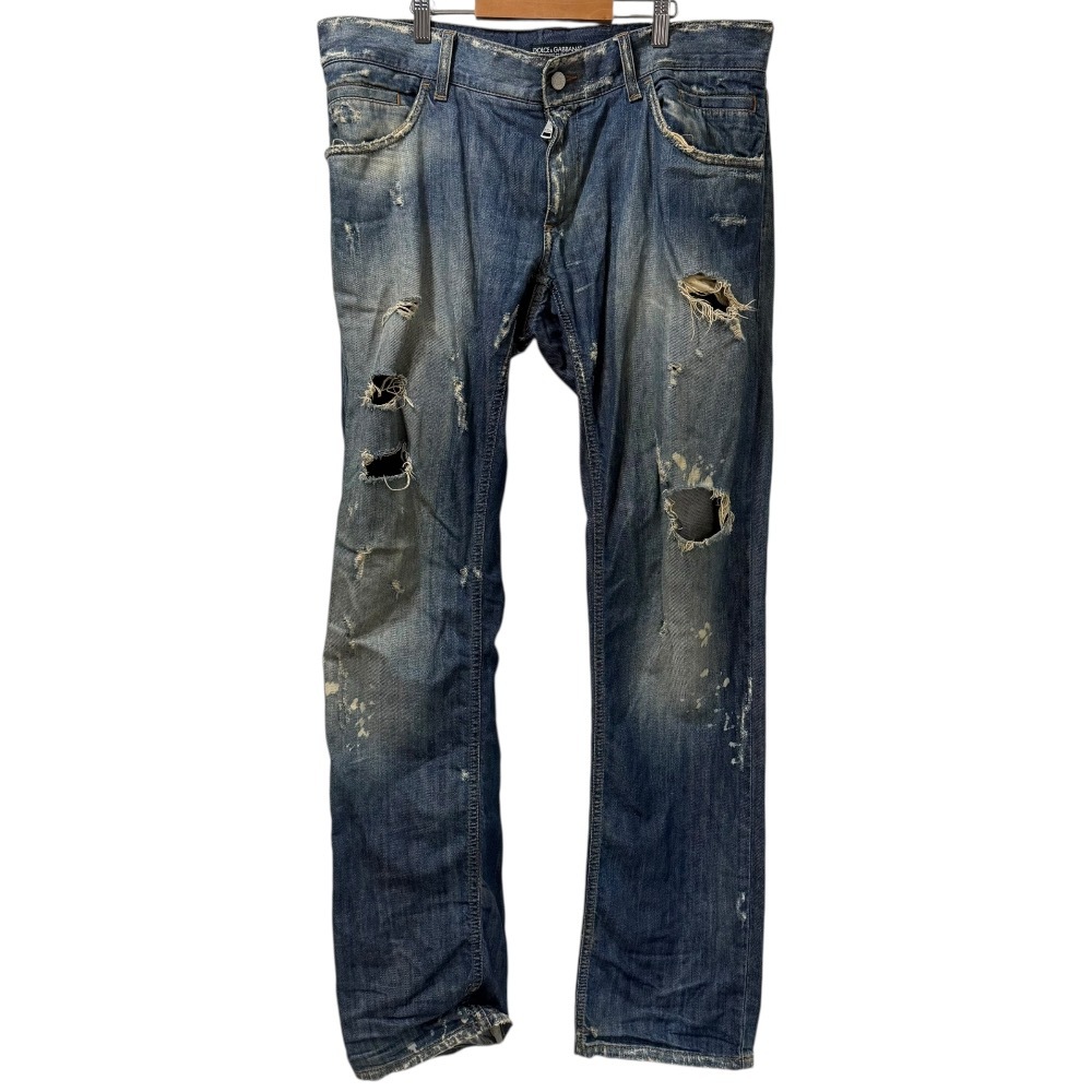 良品 DOLCE&GABBANA ドルチェ&ガッバーナ ダメージ加工 ジーンズ デニムパンツ 50 インディゴブルー