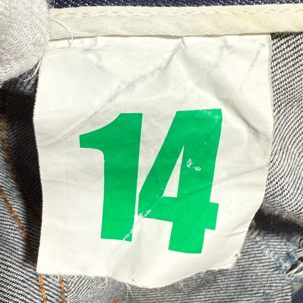 実寸サイズ:ウエスト86cm、股上23cm、股下90cm、ワタリ幅34cm、裾幅21cm