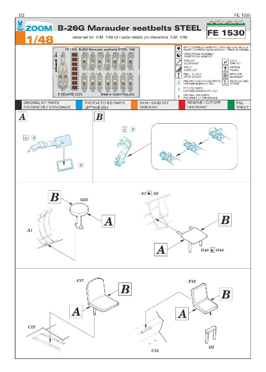エデュアルド ズーム1/48 FE1530 Martin B-26G Maraude seatbelts for ICM kit