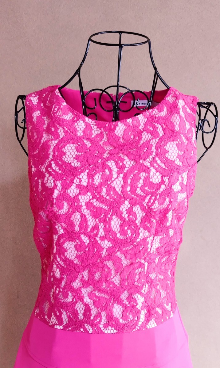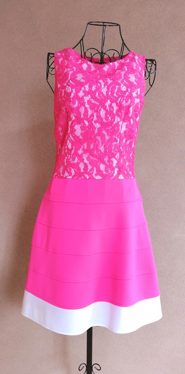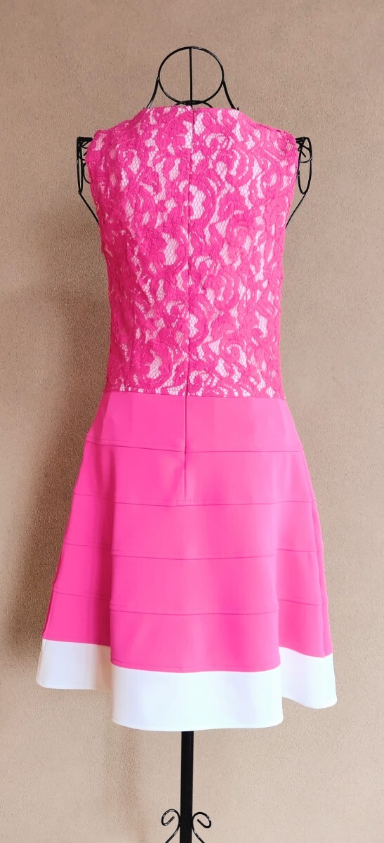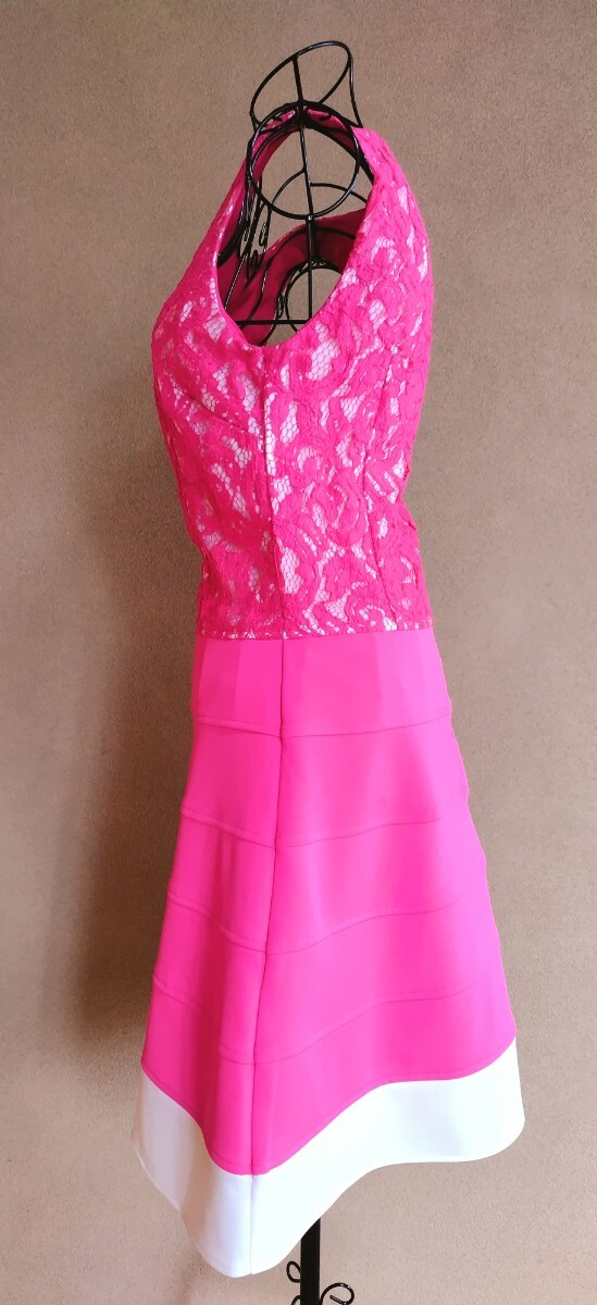 しっかりと作られたレースと切り替えのデザインがお洒落で、鮮やかな色味と裾の白のコントラストも素敵です。