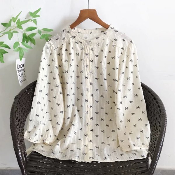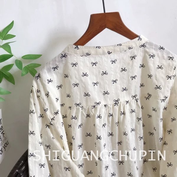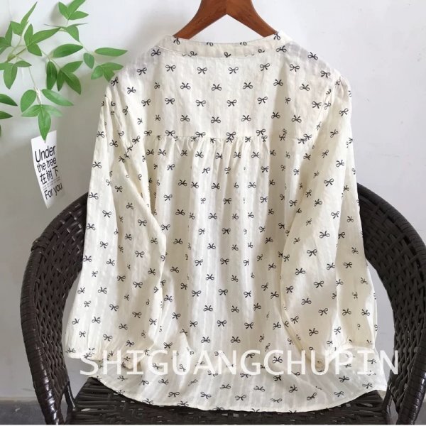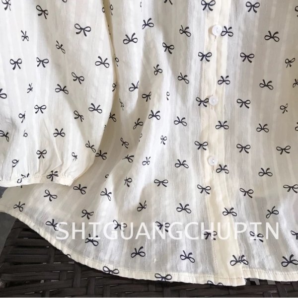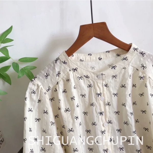 sg チュニック トップス ワイシャツ ゆったり フリーサイズ 綿100% 大人可愛 ナチュラル 通気性肌触り抜群 ブラックのリボン柄