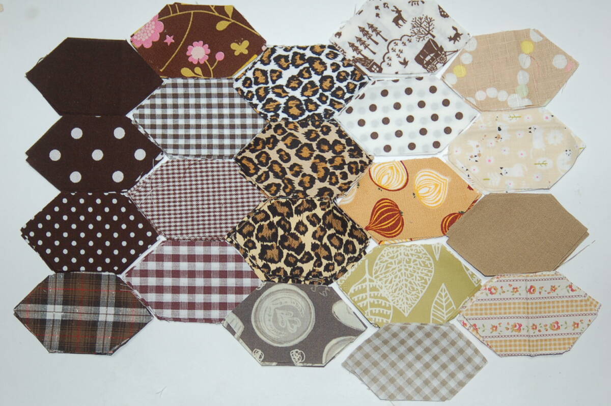 カットクロス パッチワーク用 細長六角形22㎜ 126枚 №66