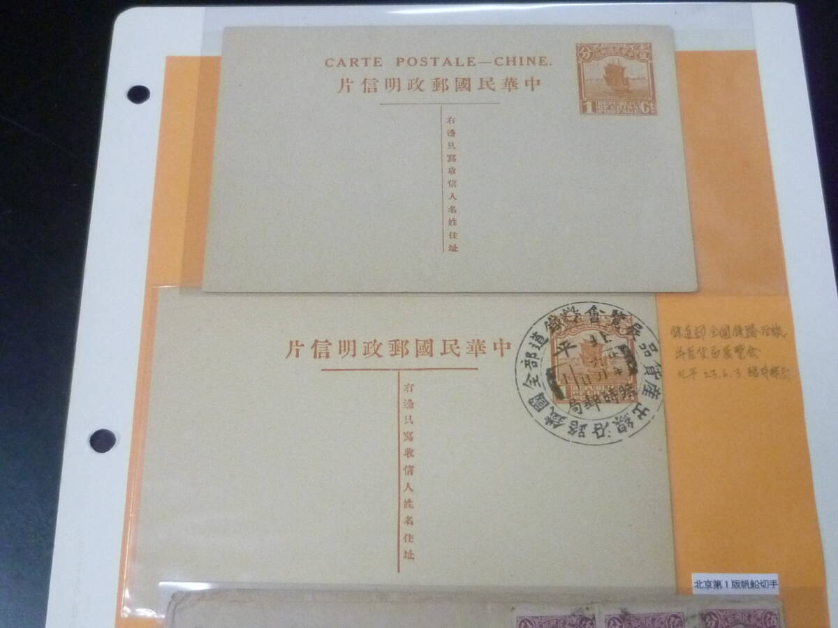 鉄道№5 旧中国切手 プルーフ(薄紙) 2c 色違 計3種+額面付葉書(未使用3通・紀念印付)4通+カバー 2リーフ