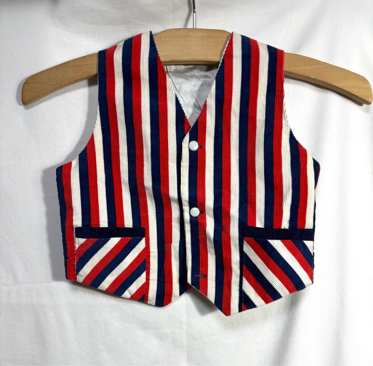 ■ 子供用 ビンテージ vintage コーデュロイ ベスト ストライプ 柄 ジレ チョッキ 古着 サイズ5 ドレス フォーマル ベビー ■