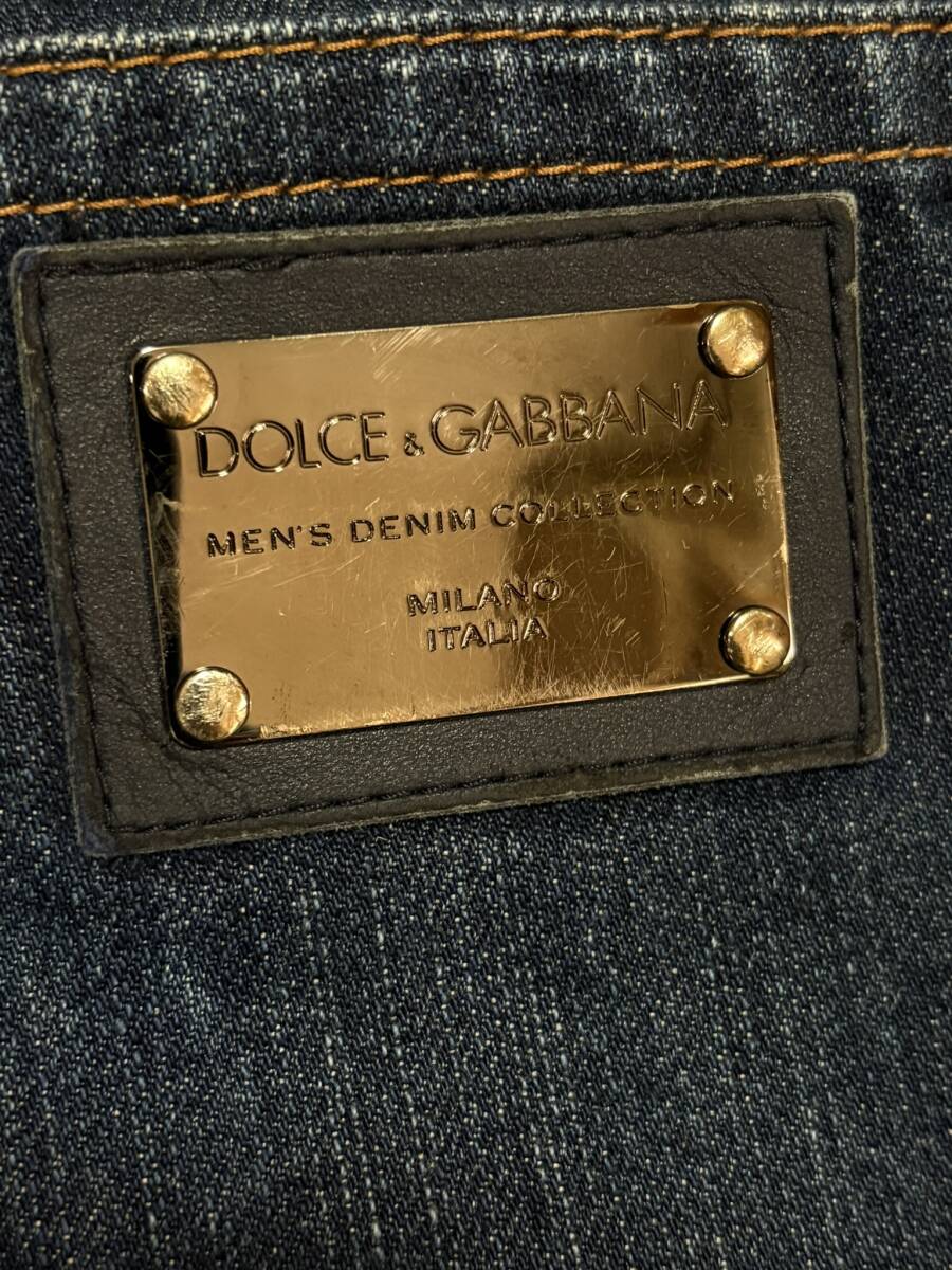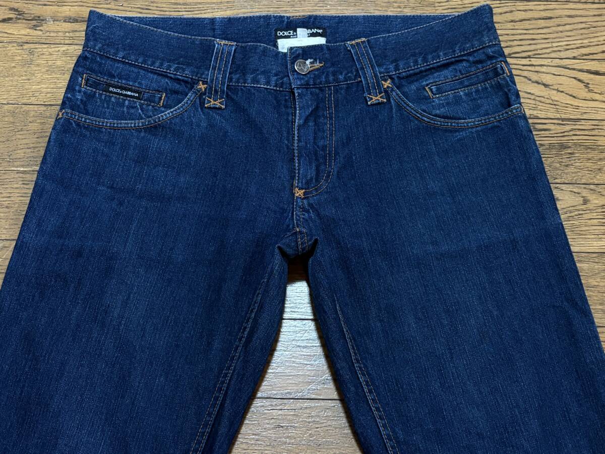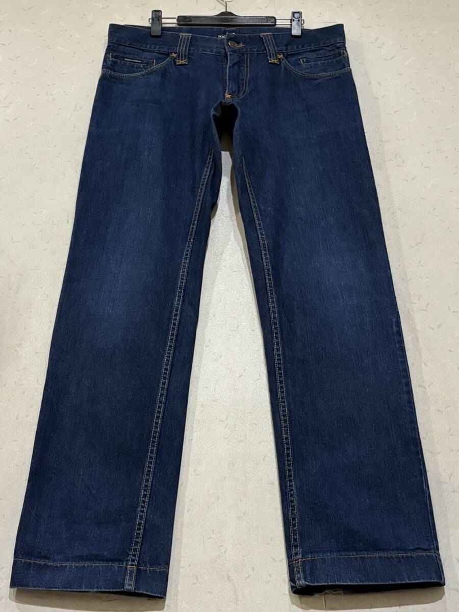 ※DOLCE&GABBANA ドルチェ&ガッバーナ 14CLASSIC ロゴプレート デニムパンツ 濃いめインディゴ イタリア製 48          BJBE.F