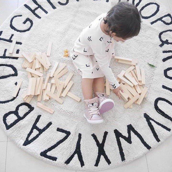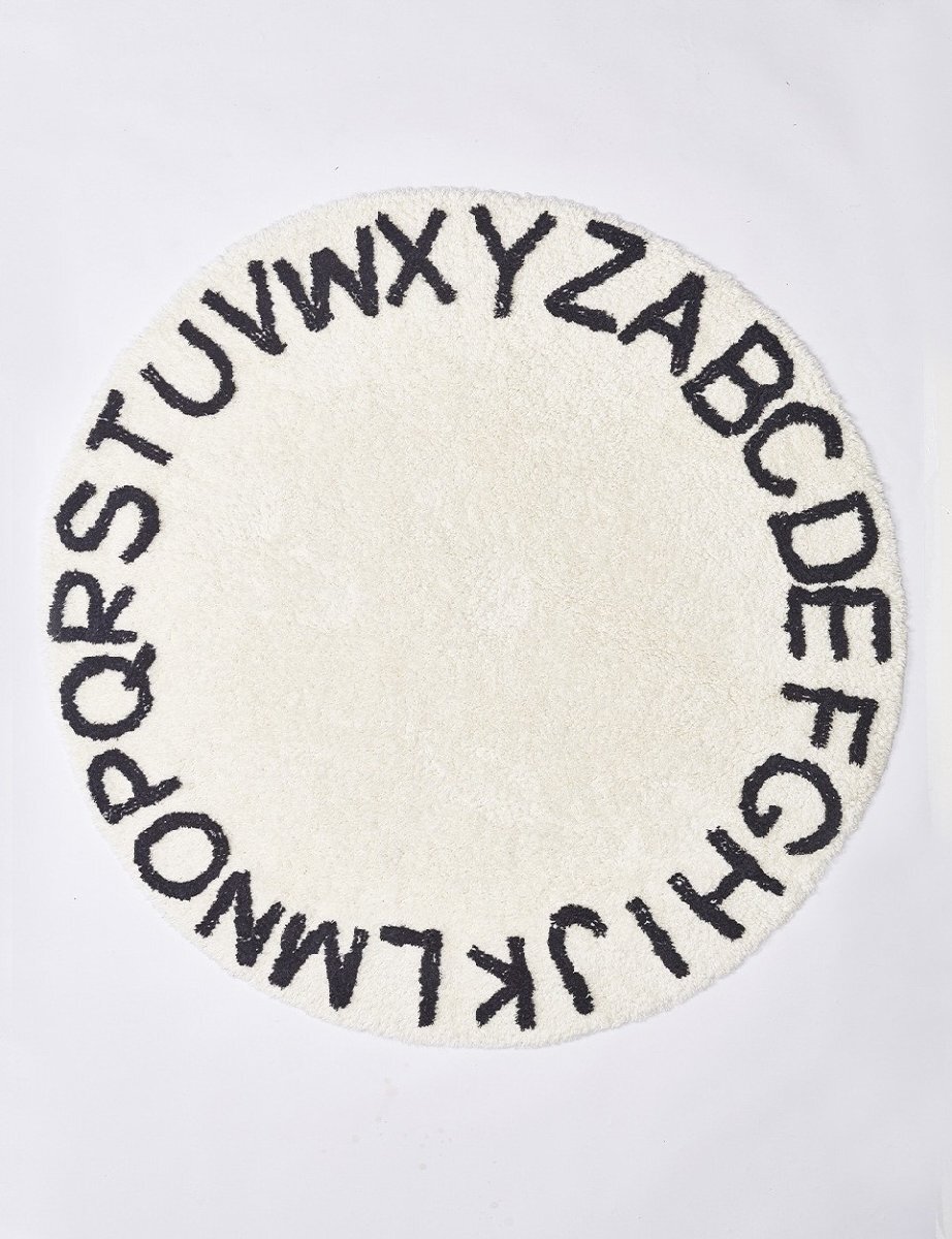 北欧 円形 丸 ベビー キッズ ABC アルファベットラグ マット 敷マット ラウンド シンプル インテリア モノトーン 直径120cm ホワイト