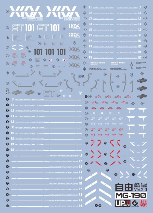 MG-190 1/100 機動戦士ガンダムSEED 1/100 フリーダムガンダム Ver.2.0用 DIY 水転写式デカール