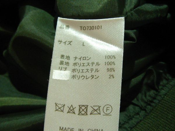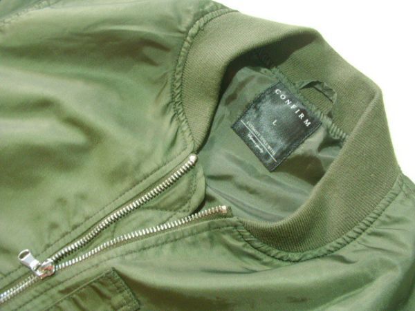 ssy7826 タグなし新品 CONFIRM ■ MA-1 ■ カーキグリーン フルジップ 未使用 L フライトジャケット ジャンパー ブルゾン コンファーム