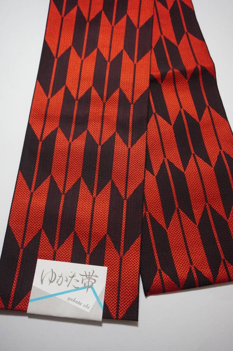 ネコポス送料込)新品即決!特価)柄浴衣帯no,03 黒/赤 矢柄 運動会、学芸会などにも