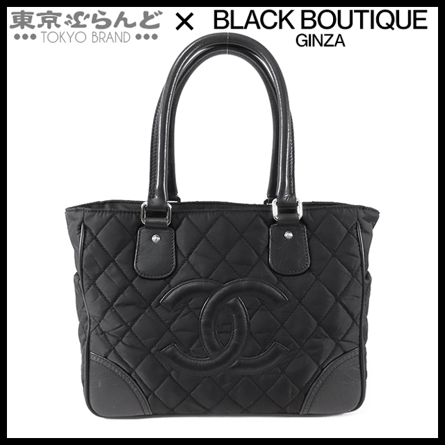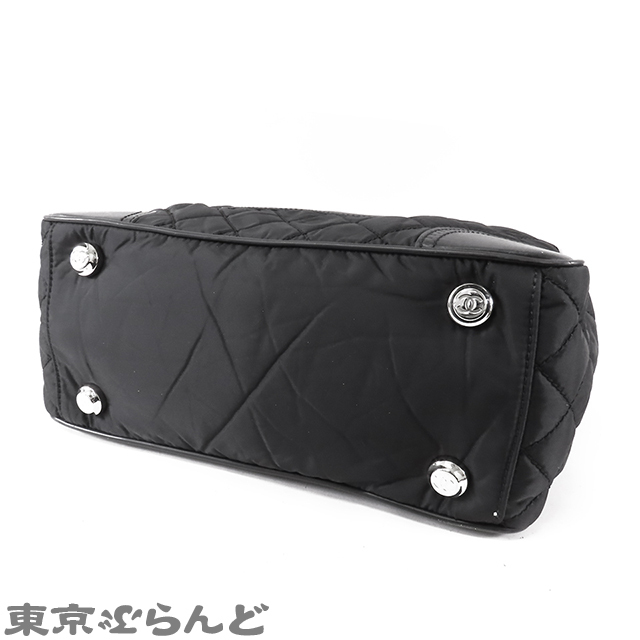 802135225 シャネル パリニューヨーク トートバッグ 12番台 A33100 ブラック ナイロン レザー ココマーク トートバッグ レディース