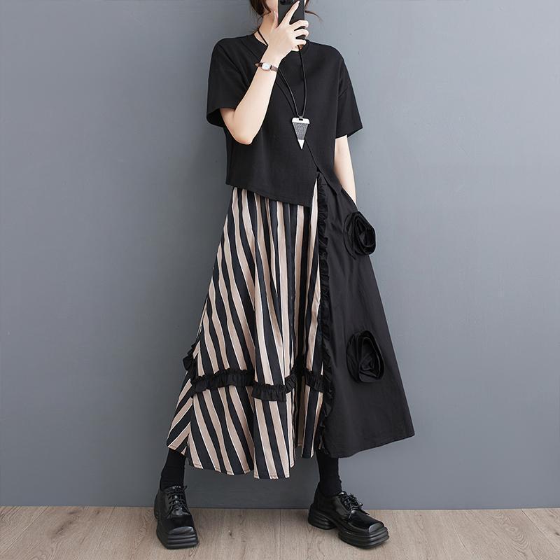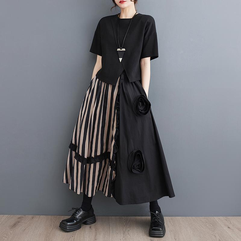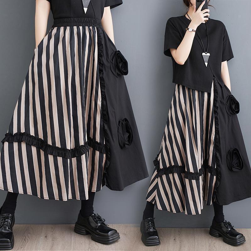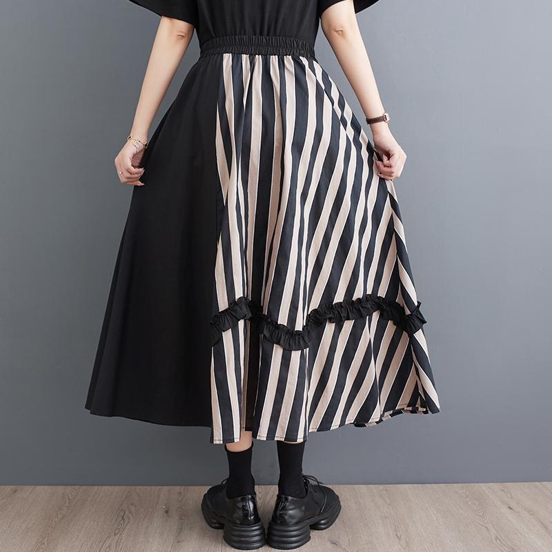 大きいサイズ ストライプ スカート レディース 春夏 新品 ミモレ ロング ポケットあり