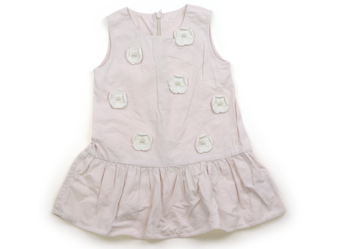 綿布帛生地。花はアクリルコットンニット生地です。本体に色褪せ、花にヨレ、スカート部分に茶色い汚れあり。背中ファスナーですがファスナーの上げ下げがやや固めです。