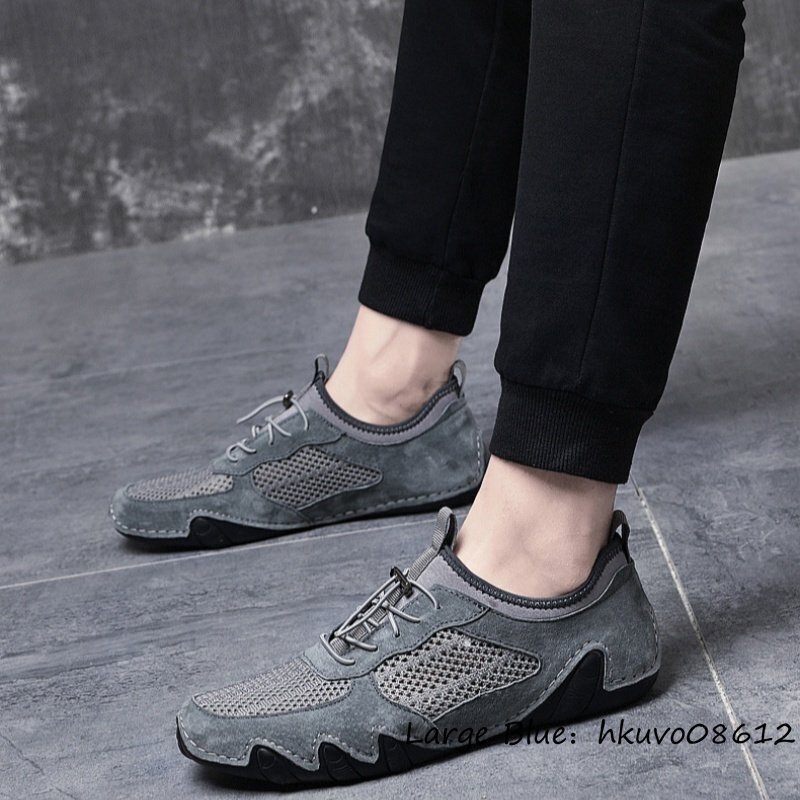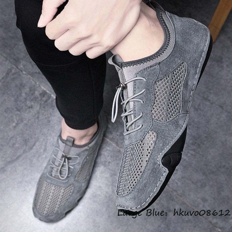 夏新品 ローファー スリッポン メンズ ドライビングシューズ 通気性 透かし彫り メッシュ 運動靴 スニーカー ウォーキング グレー 24.5cm
