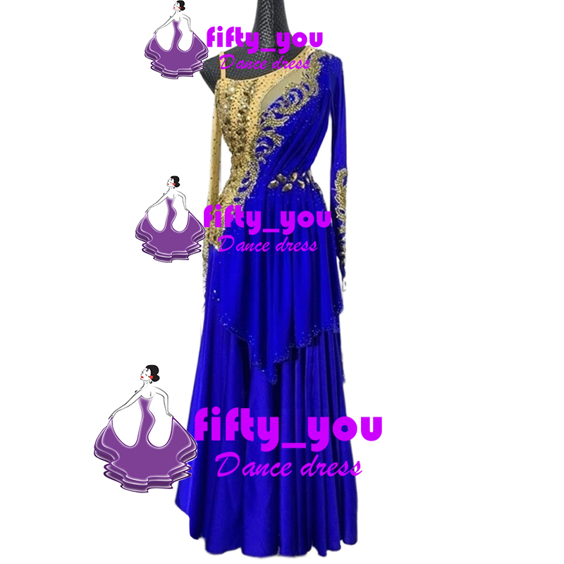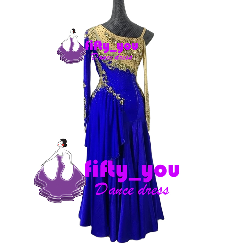 新品fifty_youレディース社交ダンス衣装  ラテンとモダン兼用ドレス セミオーダー 競技試合高品質ドレス ロイヤルブルー