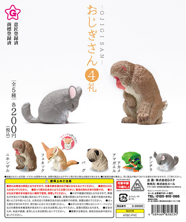 【A-21】ガチャガチャ おじぎさん 4礼 全5種セット ガチャ 動物 どうぶつ お辞儀 フィギュア カプセルトイ【mini】
