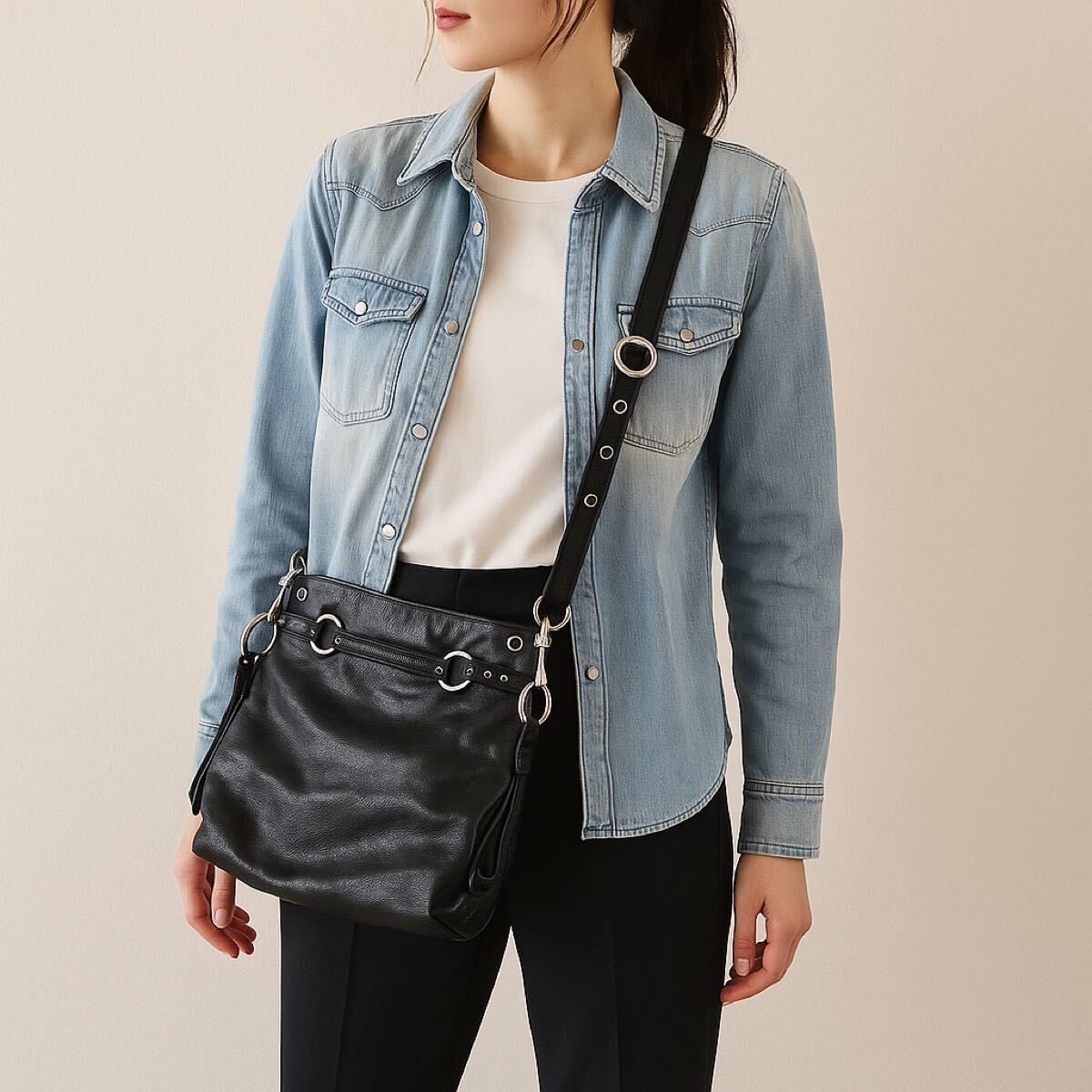 シンプルながらもシルバーのリングパーツがアクセントになった、大人の女性にぴったりのデザイン。