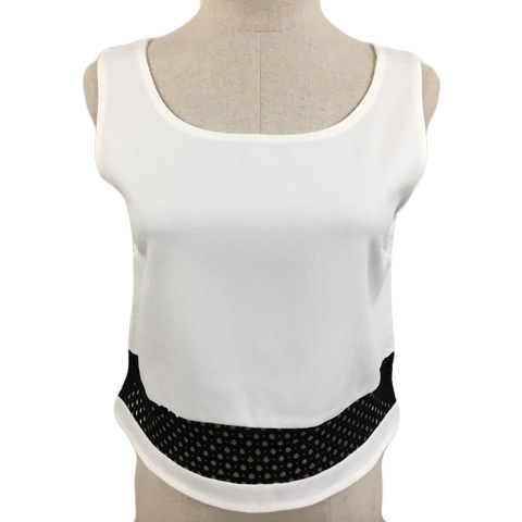 未使用品 リエンダ カットソー タンクトップ プルオーバー ラウンドネック ショート 無地 レース ノースリーブ FREE 白 黒 ホワイト