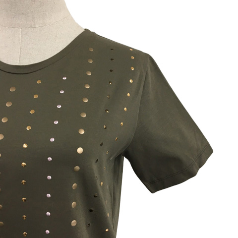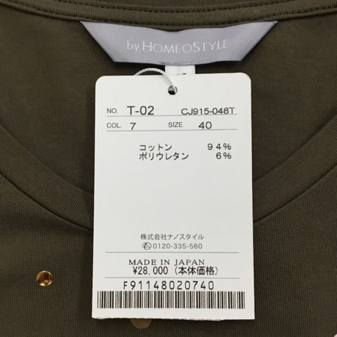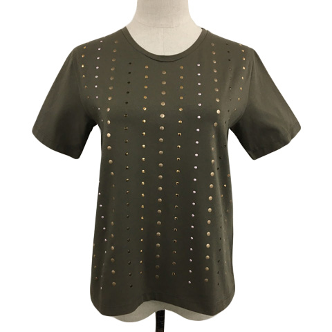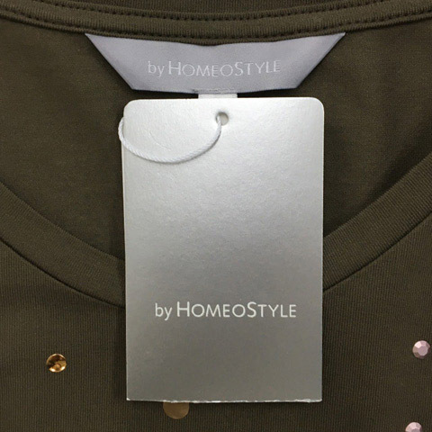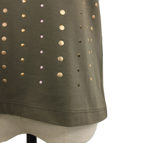未使用品 ホメオスタイル by HOMEOSTYLE カットソー Tシャツ プルオーバー ラウンドネック スタッズ 半袖 緑 グリーン レディース