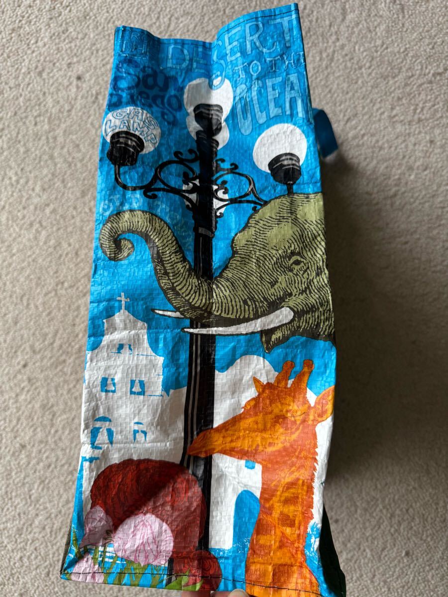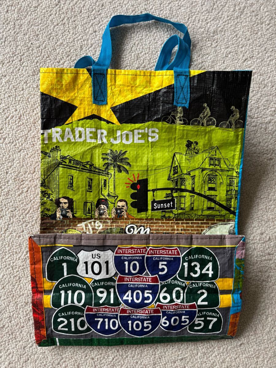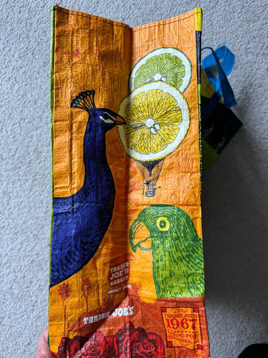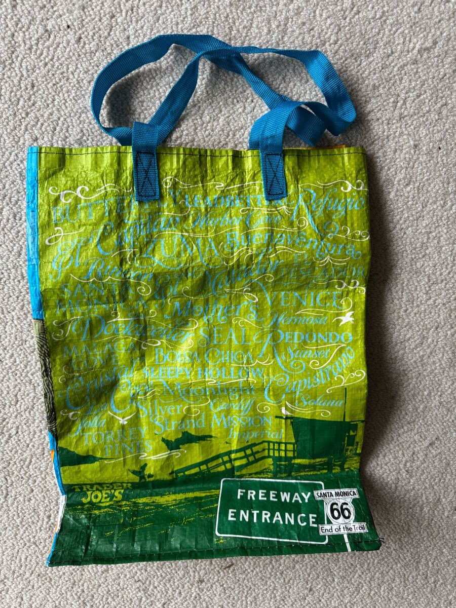 アメリカのスーパー、Trader Joes(トレーダージョーズ)の、丈夫な大容量エコバッグです。