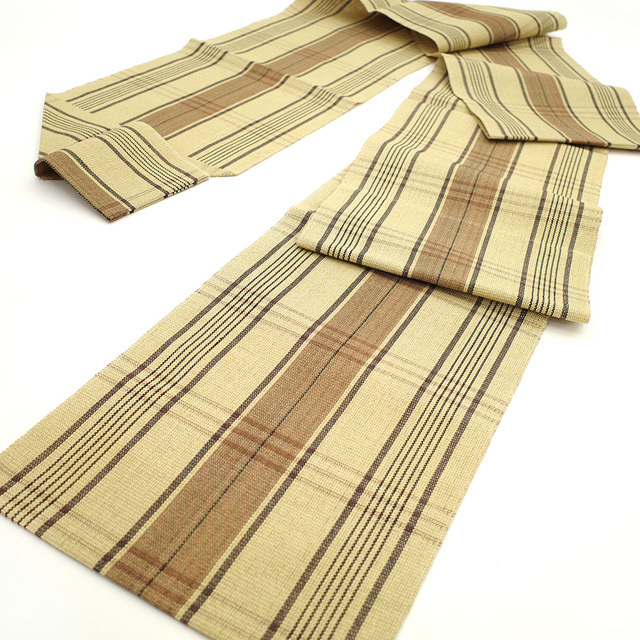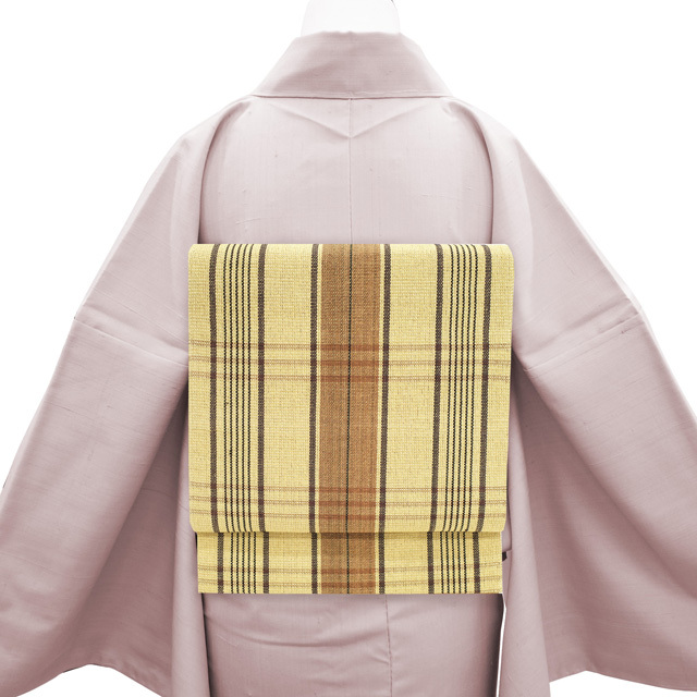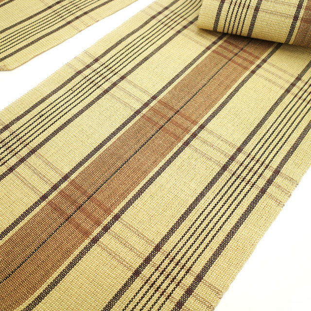 こちらのお品は、黄ベージュ×茶色で格子が織り上げられています。
