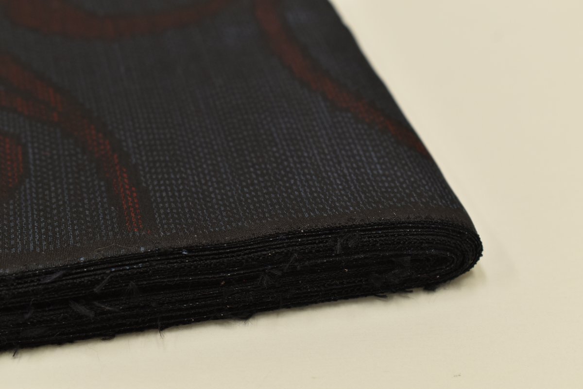 【ちどりや】未使用品 美品 正絹紬 本場大島紬 横双絣 着尺反物 唐草文様 黒紺 ラベル付 Y232
