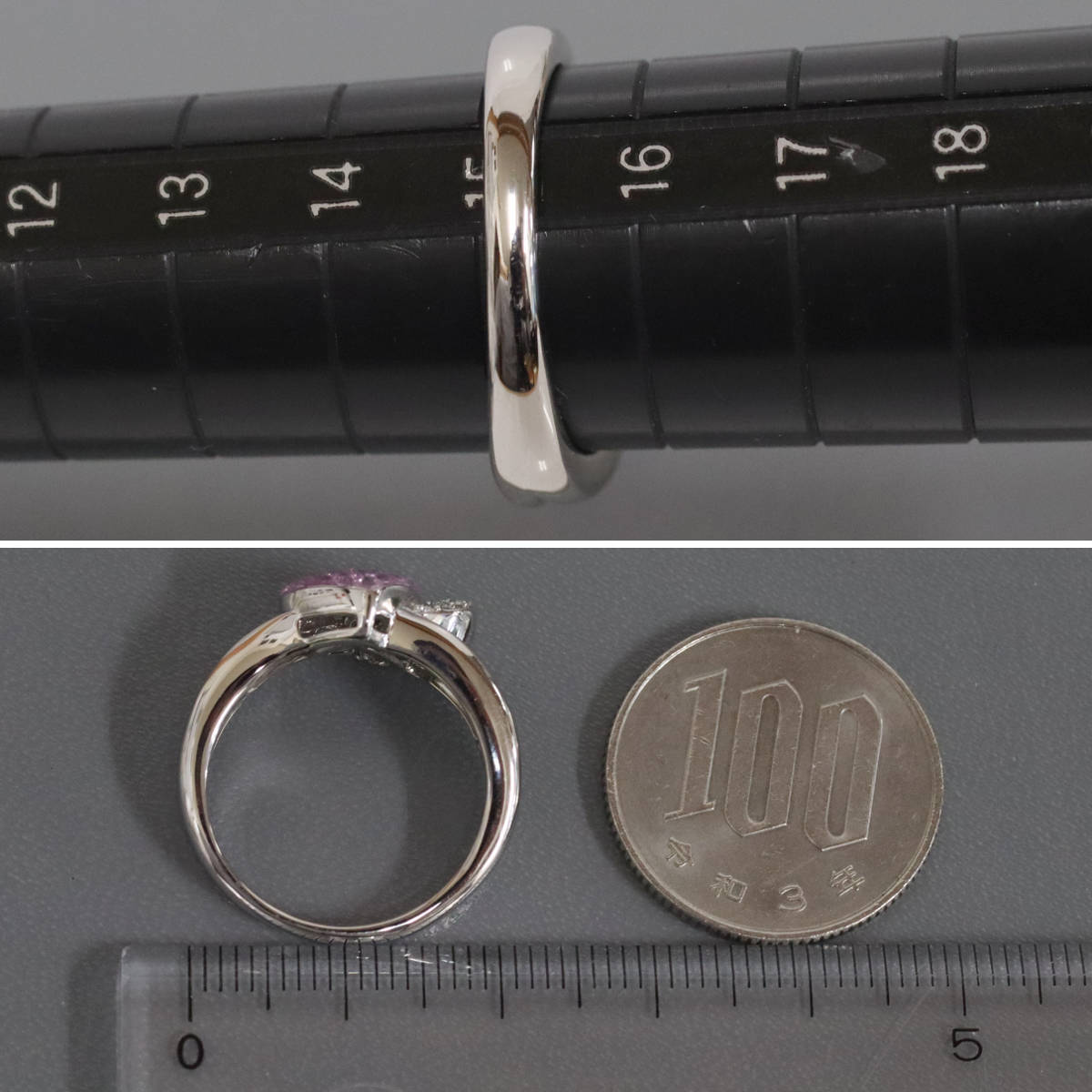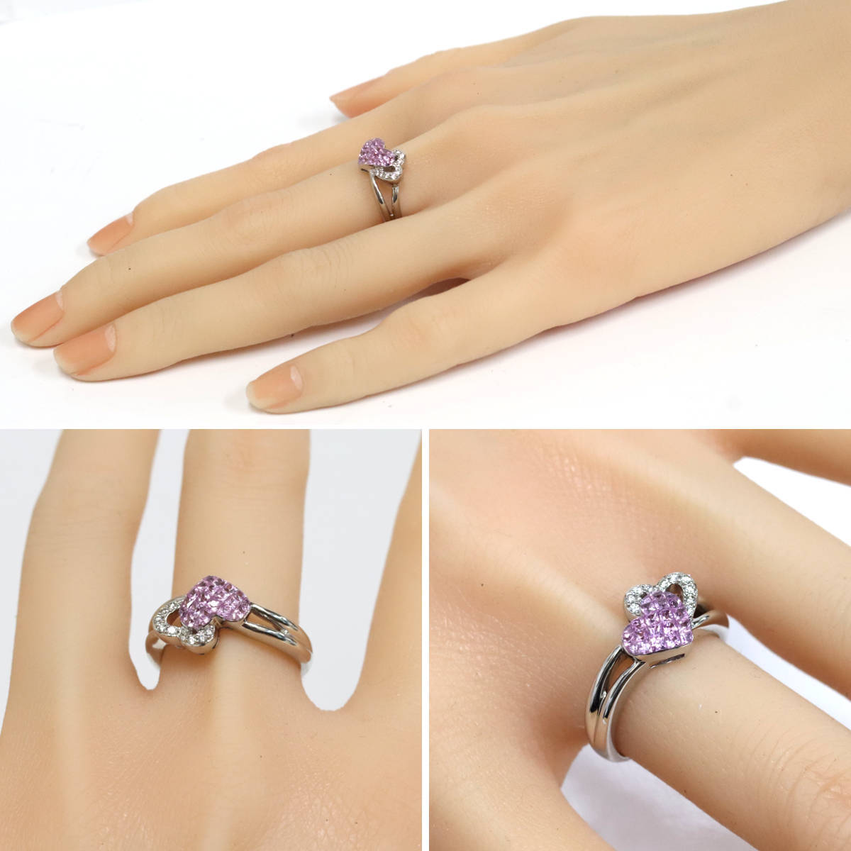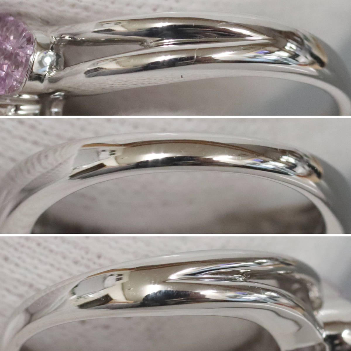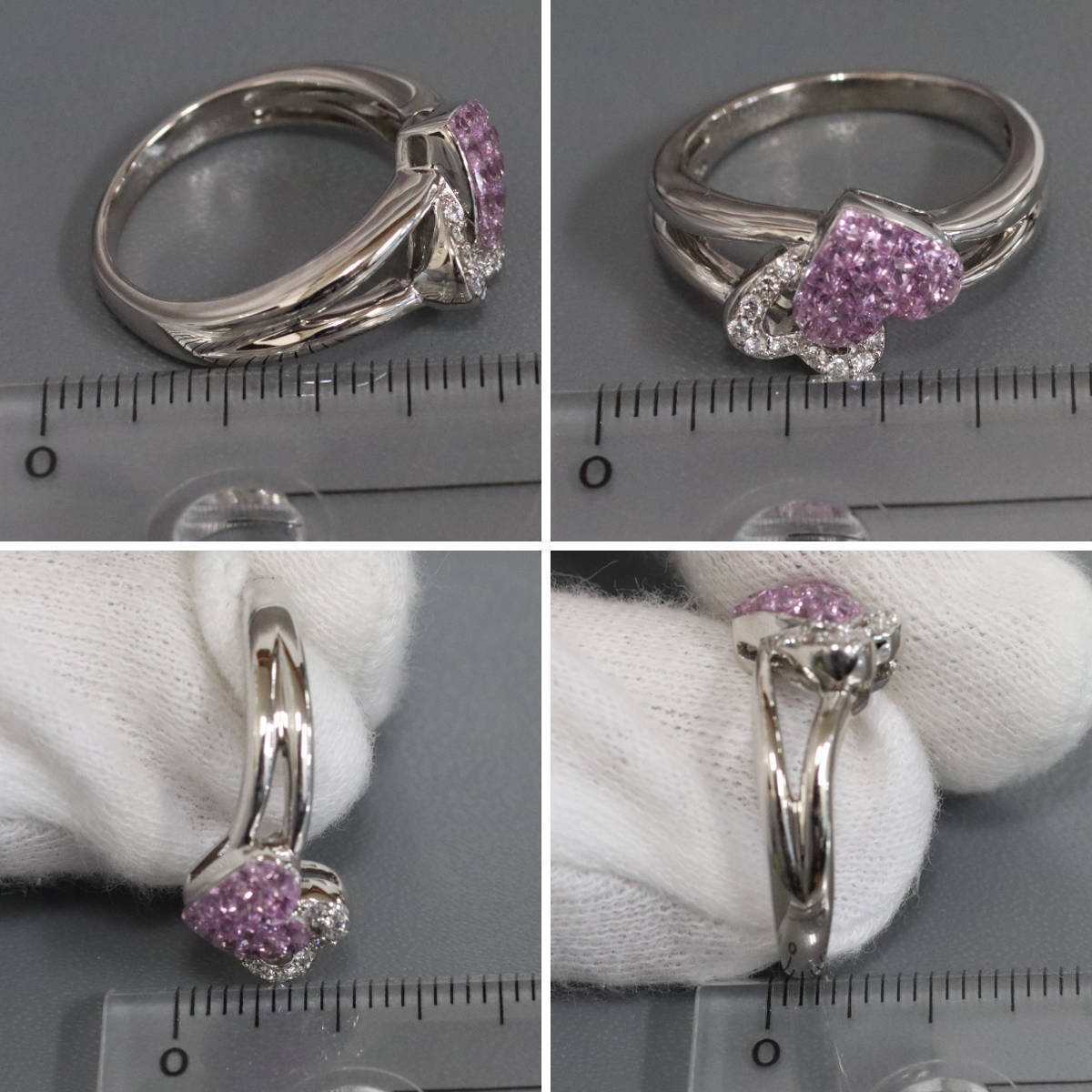 笠原真寿美のK18WGサファイアダイヤモンドリングの中古品です。 ハートモチーフの可愛らしいデザインです。 石目の刻印はありません。 サファイアはミステリーセッティングでセットされています。 薄いピンク色で、わずかにインクルージョンがありますが、肉眼では見えません。 ダイヤモンドは全体的にインクルージョンが少ないです。 地金には小傷があります。