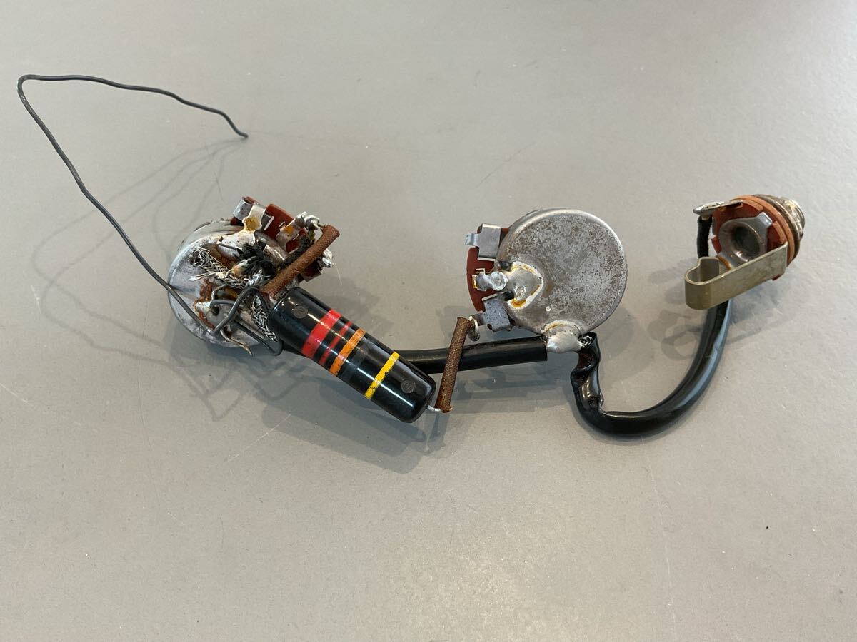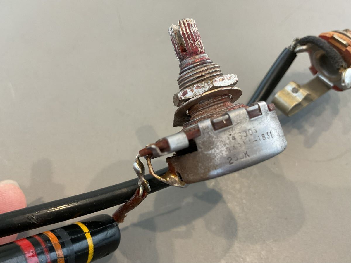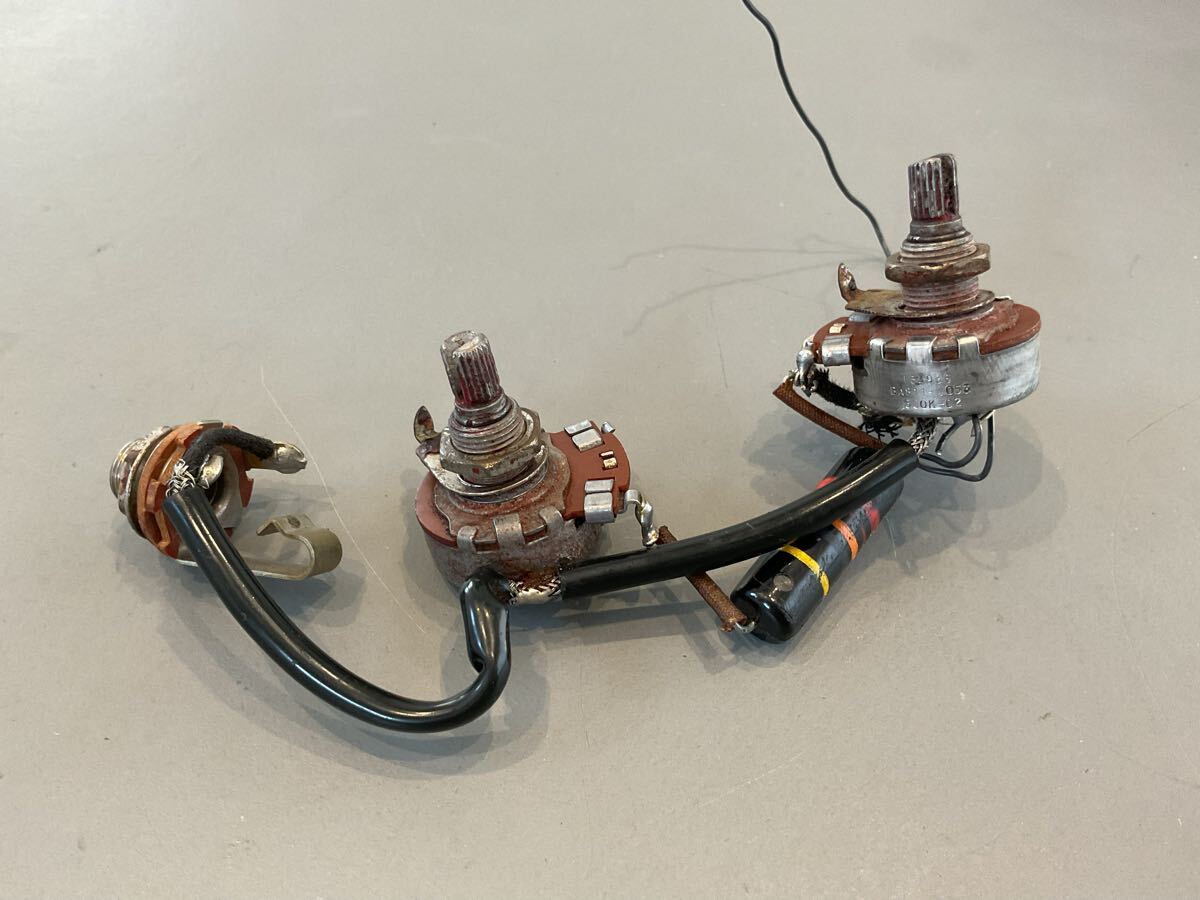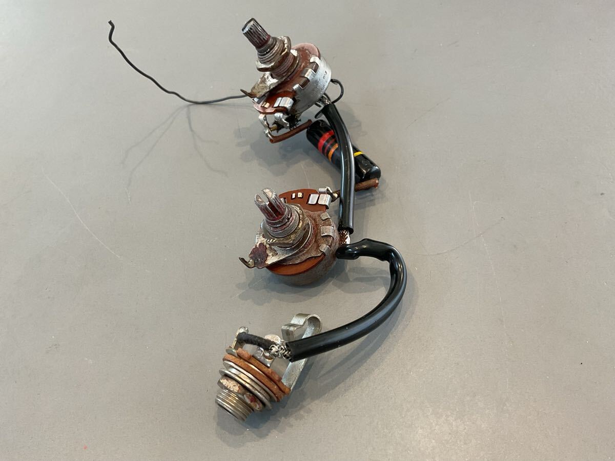 ギブソン ビンテージ 1959-60年製から外したポット コンデンサー ジャック 配線がセットです。60年製が5週で250K 1959年製35週で500kです。