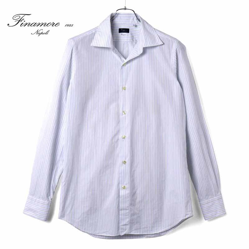 FINAMORE(フィナモレ) / ALUMO製コットンポプリンセミワイドカラーストライプシャツ(P5053E MIL58 VITTORIO) [fin2510241-40]