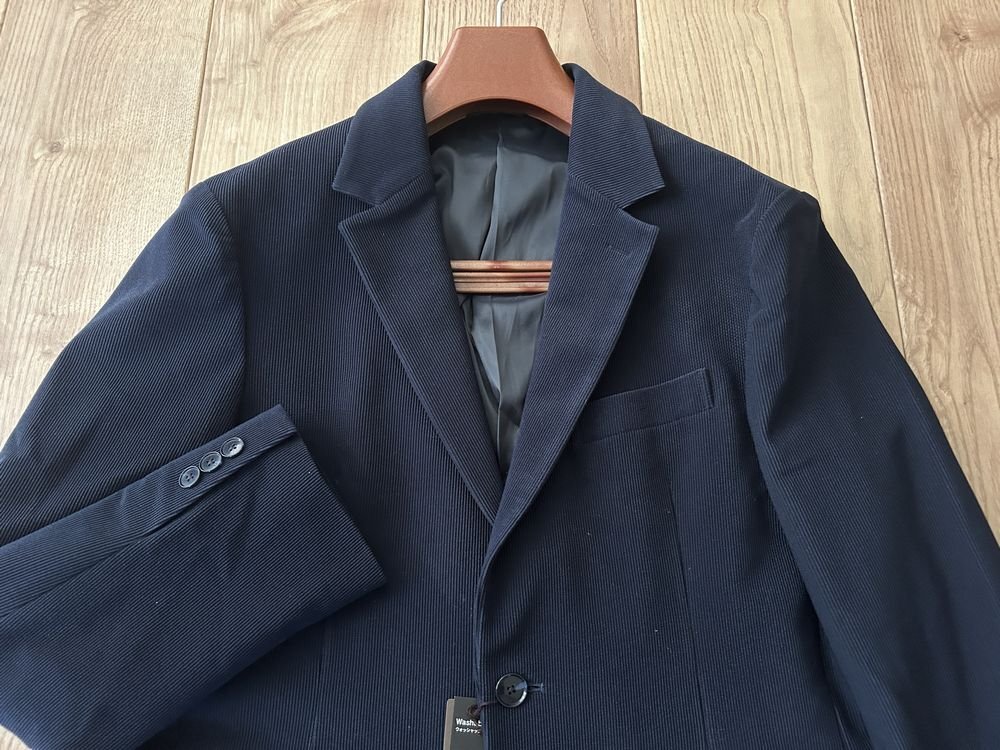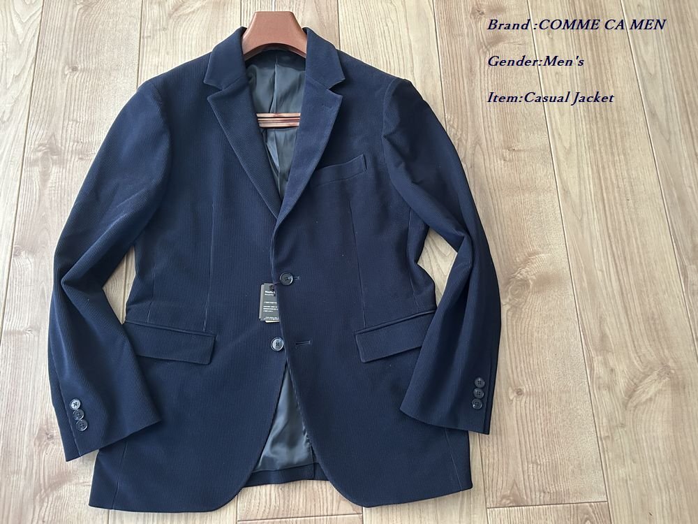 新品サンプル COMME CA MEN コムサメン 2WAYトリコットコーデュロイノッチドラペルジャケット 09ネイビー Mサイズ 14JI23 定価53900円