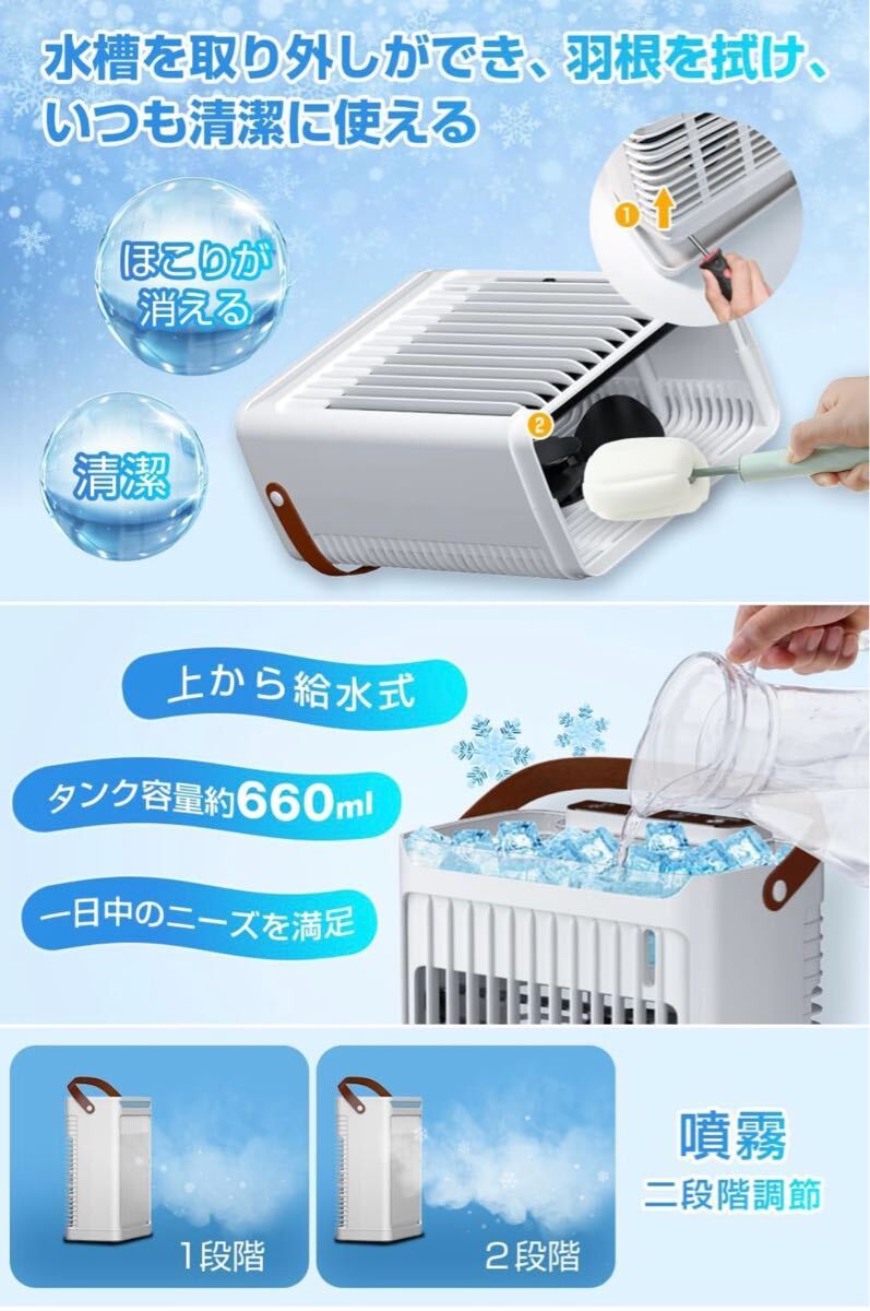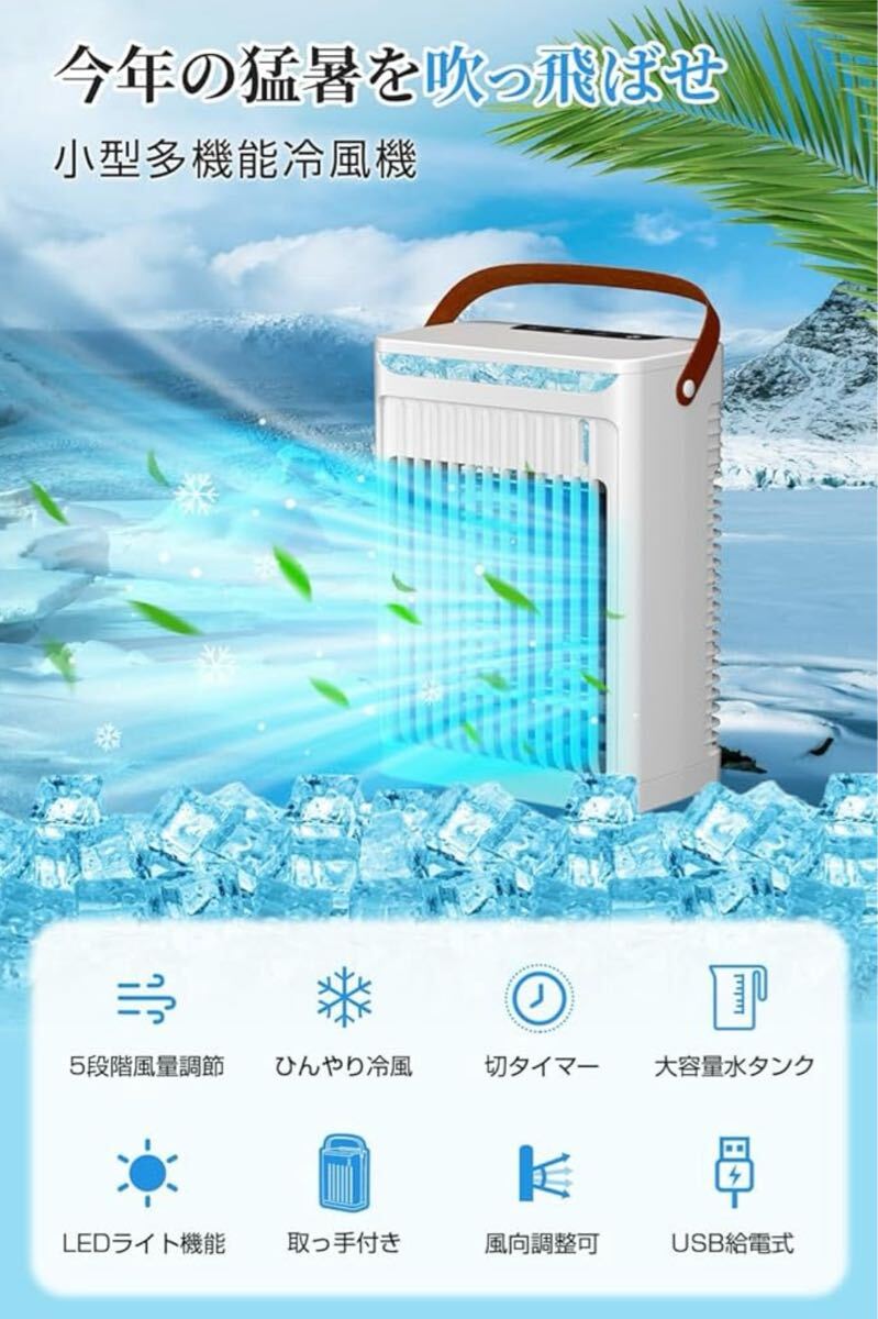 冷風機 冷風扇 【新設計 -11℃の冷却力・5段階風量】 卓上冷風機 小型 水冷エアコン 大風量冷感UP 瞬間冷却 超音波霧化加湿 冷却 氷いれ可能 600ML大容量 2段階噴霧量 上下風向調節 水漏れ防止 冷風扇風機 USB給電式 マイナスイオン LEDライト タイマー付き 省エネ 熱中症対策 暑さ対策 オフィス 寝室 家庭用 日本語説明書 (ホワイト)