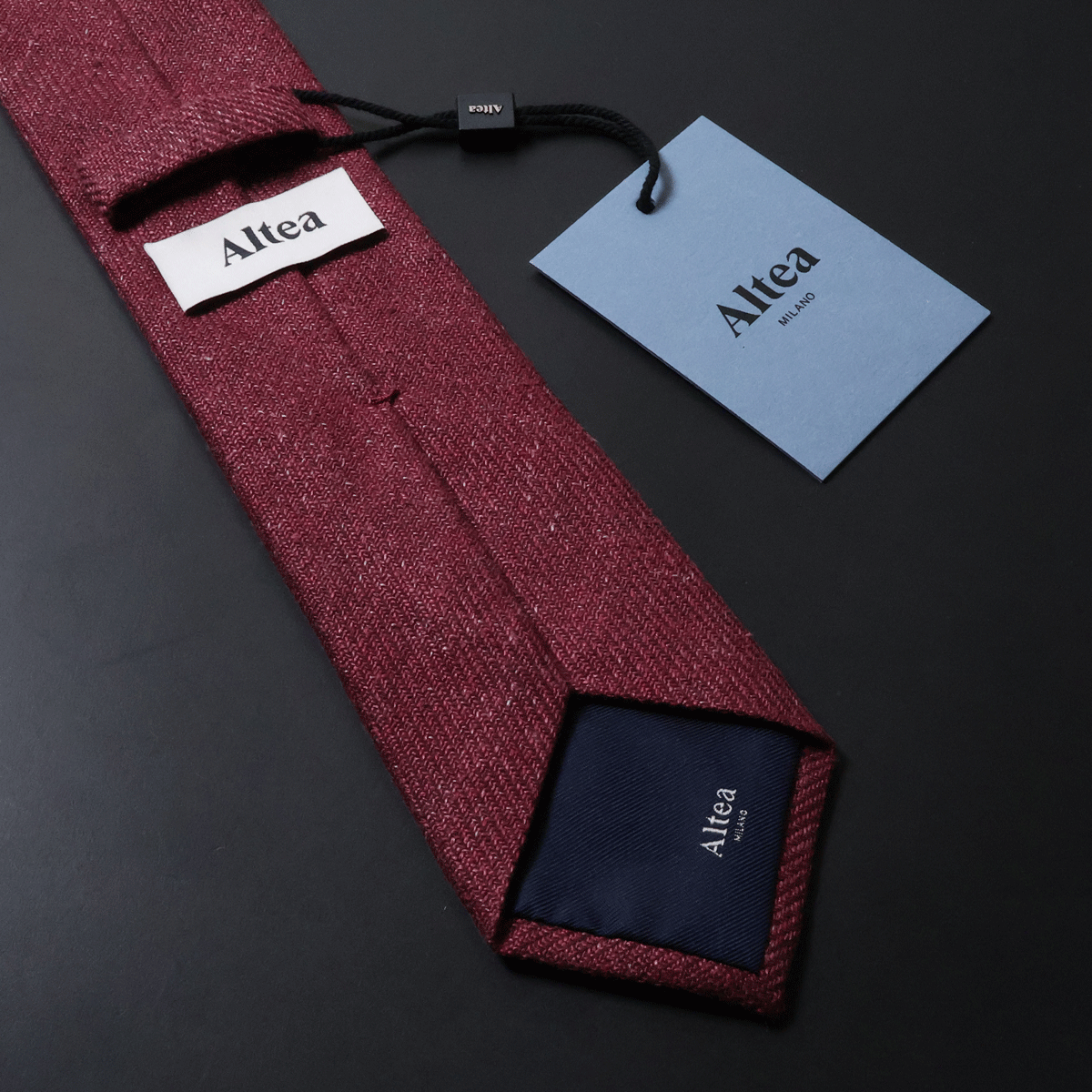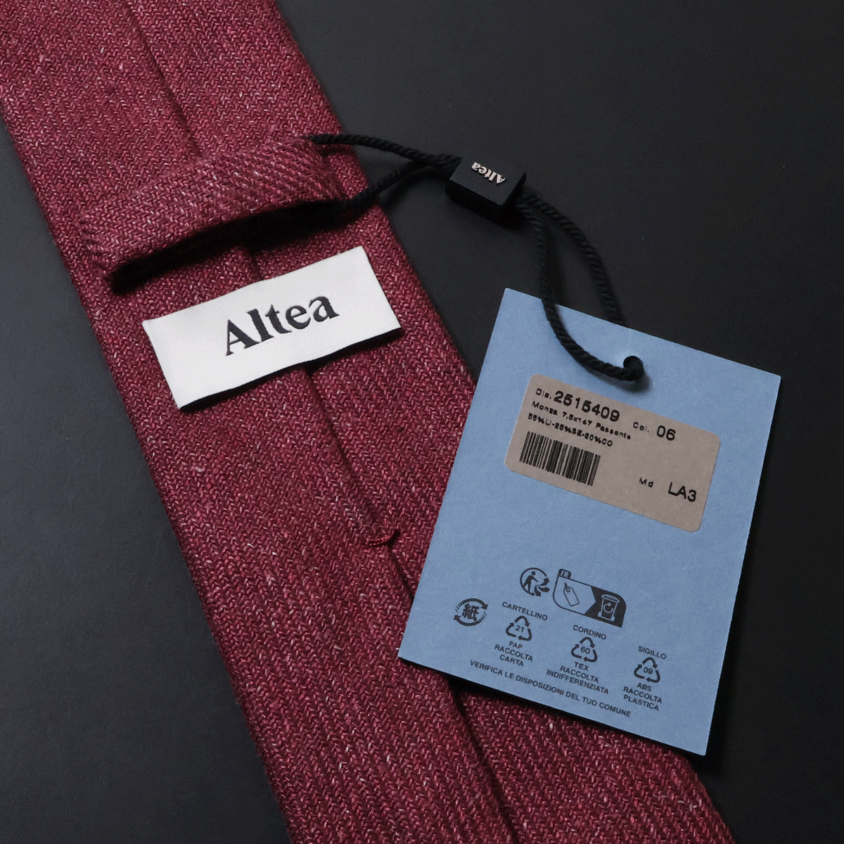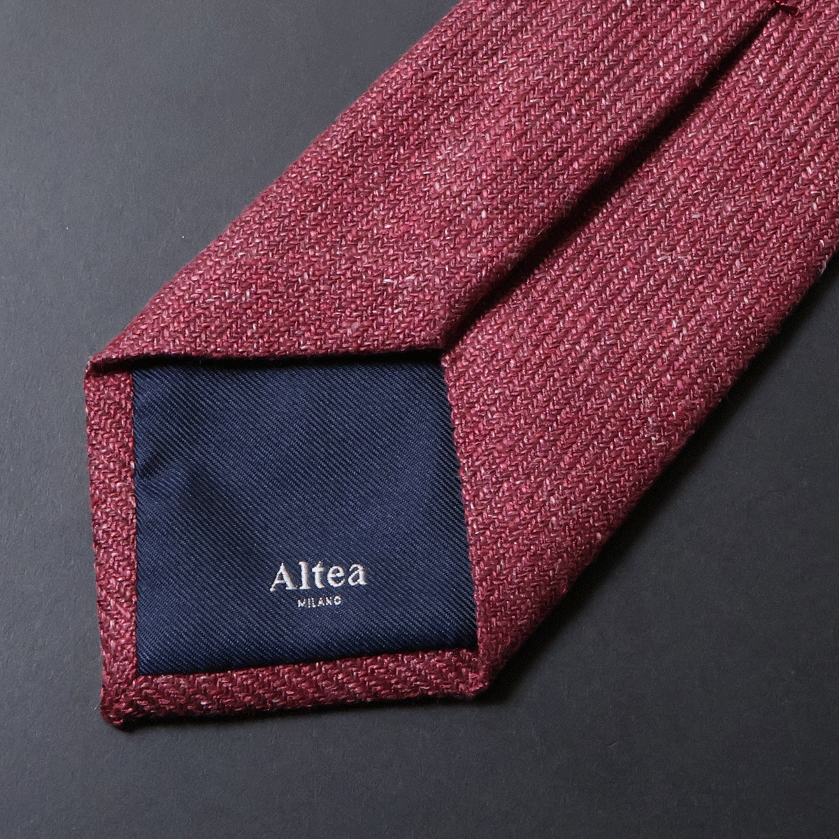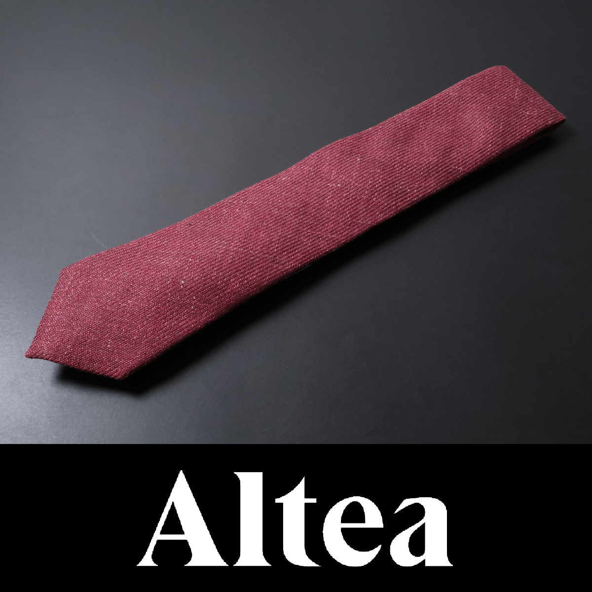 altea アルテア イタリア製 ネクタイ <altea アルテア> 1892年、イタリアはミラノにジュゼッペ・サルトーリが一軒のネクタイ店を開店しました。 たちまち評判になり、洗練されたミラノっ子たちがネクタイを買い求めました。 ネクタイ&スカーフが主力アイテムでありましたが、 シンプルかつベーシックなアイテムに、得意とするプリントや鮮やかなカラーでアルテアの世界を表現する トータルファッションブランドとして、現在はコレクションも発表しています。 伊勢丹・三越・高島屋・阪急などのデパート、 ビームス・シップス・バーニーズ・ユナイテッドアローズなどのセレクトショップで好評販売中です。 ご着用最適シーズン:オールシーズン カラー:バーガンディ サイズ:剣先幅8㎝ 素材:リネン60%、シルク20%、コットン20% 定価:16,500円 |