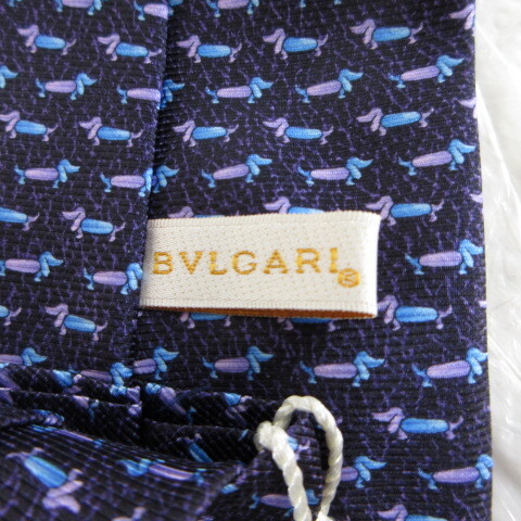 未使用品 ブルガリ BVLGARI ネクタイ 総柄 シルク 紫 *T586 ☆AA★ メンズ