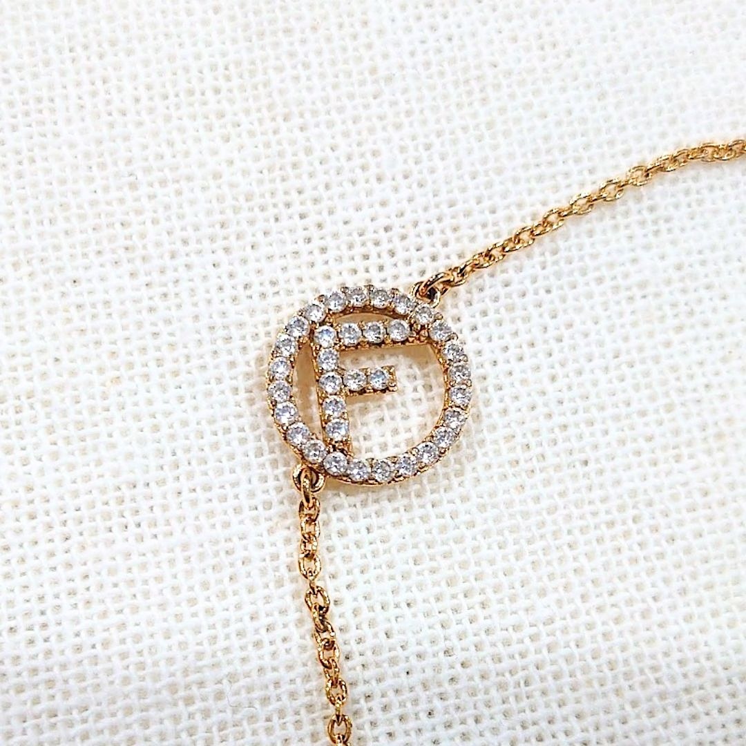 ◎FENDIの人気シリーズ、エフ イズ フェンディのチェーンブレスレットです。小さなラインストーンで作る「F」の輝きは美しく、手首をエレガントに彩ります。チェーンには丸かんが3箇所ついており長さの調整が可能です。若干の使用感はありますが、ストーンの輝きが綺麗でまだまだお使いいただけるアイテムです。