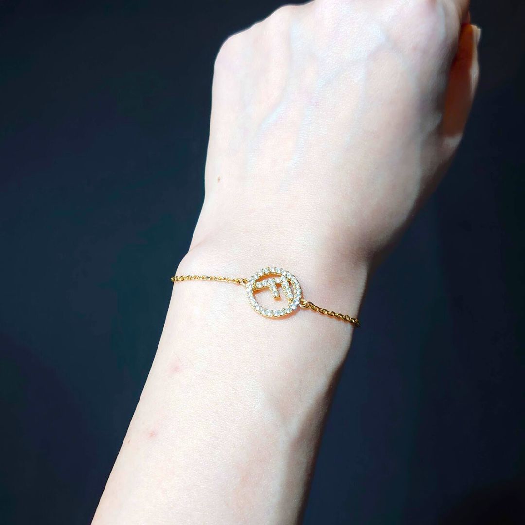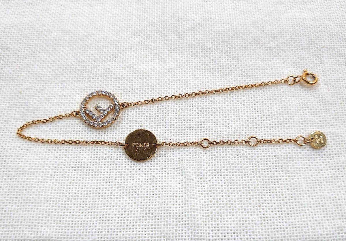 【人気】FENDI フェンディ チェーン ブレスレット エフイズフェンディ ゴールド ラインストーン アクセサリー 鑑定済【送料無料】