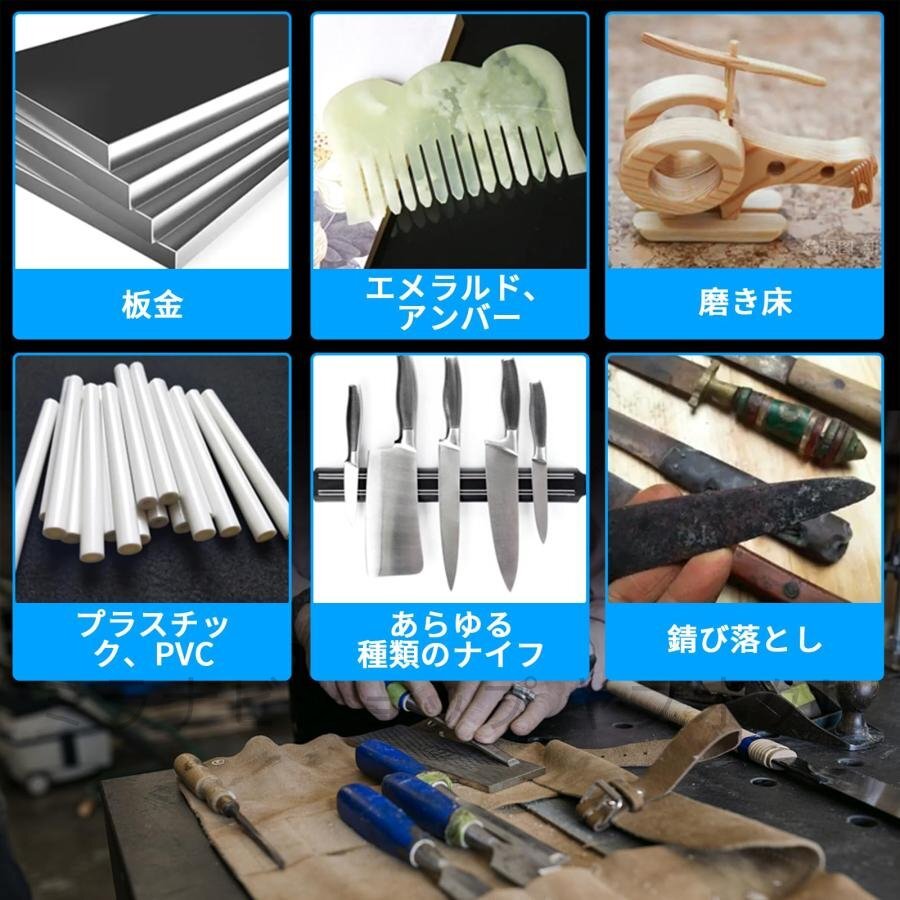 【デュアルスピード調整】ベルトサンダーは、可変速度調整とRPMディスプレイが付属しており、パワーコンフィギュレータはまた、7つの速度を調整することができ、デュアルスピード制御は、異なる製品に必要な速度を理解するのに便利です、また、正回転/逆回転モードを切り替えることができ、あらゆるサンディングのニーズに対応します。 【ポリッシングホイールキット】10000r/min 強力スピード、左側は硬い素材を研磨するための石砥石、布砥石はベルトサンダーの右側に素早く取り付けることができ、ジュエリー樹脂や金属素材のクリーニングと研磨に非常に効果的です。 【緩みと垂直を調整する】パワーベルトサンダーテーブルの角度は自由に調整することができ、使いやすく、ベルトサンダーは金属を研削するために500Wの超強力なモーターを持っています。ナイフの製造、木材、アクリルや他の材料は細かい、高硬度の材料を研削、効率的かつ安定した、頑丈で実用的な、熱や火傷の問題を心配する必要はありませんので、あなたの仕事は簡単かつ安全です。 【高品質のベルトサンダー】ベルトサンダーは、高品質の金属で作られ、簡単に錆びない、耐摩耗性、長寿命。滑り止め、防塵。ベースは安定で頑丈で、デスクトップに置くことができ、エネルギーを節約します。 サンディングベルトは均一で、落ちにくく、耐磨耗性に優れ、高品質です。 スプリング構造のサンディングベルト調整ホイールは、自動的に弾性を調整し、サンディングベルトを交換することができ、フットパッドは、耐衝撃性であり、高さ調節可能なフットパッドは、また、フットパッドを削除し、テーブルや木材にねじ込むことができ、使いやすい 【広く使用されている】私たちの電動サンディングマシンは強力で、操作が簡単で、安定した速度、それは金属、アルミニウム、木材、プラスチックなどを磨くことができます、ご質問がございましたら、お気軽にお問い合わせください。24時間以内に対応いたします。 ★商品写真はできる限り実物の色に近づけるよう努めておりますがご使用のPCモニター設定や部屋の照明により多少、色の変化が感じられる場合がございます