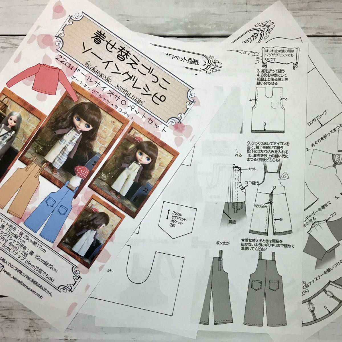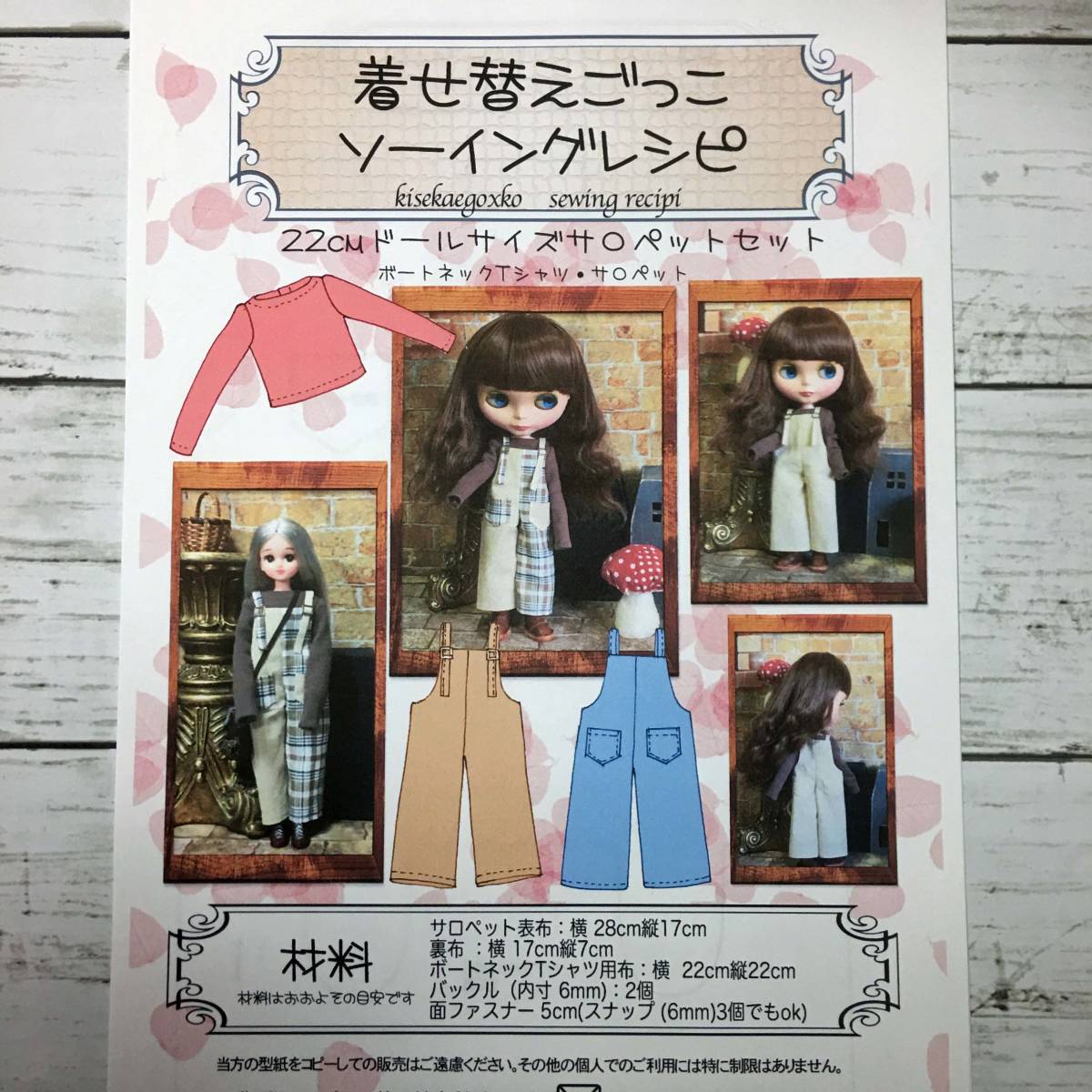 <着せ替えごっこソーイングレシピ> 22cmドールサイズサロペットセット型紙と作り方です。