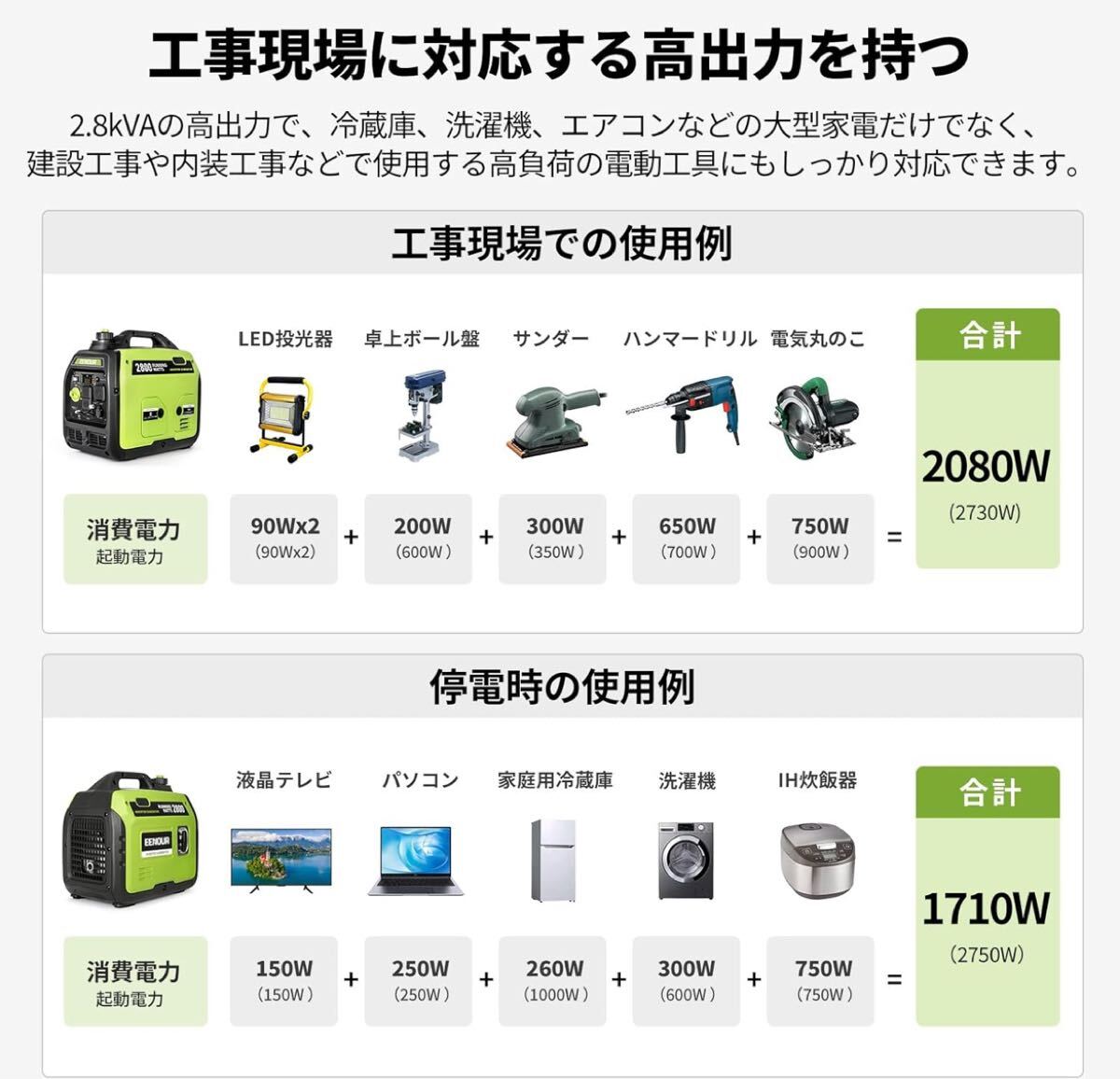こちらの商品は持ち運びが楽で、パワーのある発電機の為、人気の商品になってます。