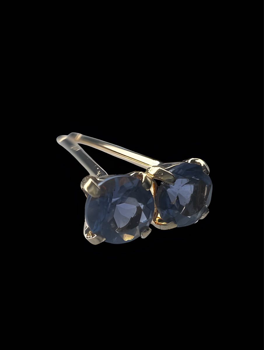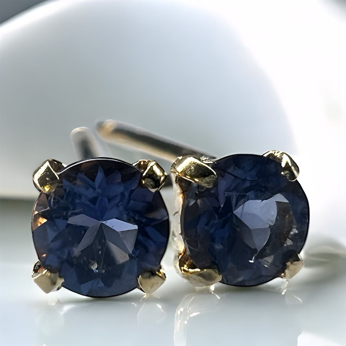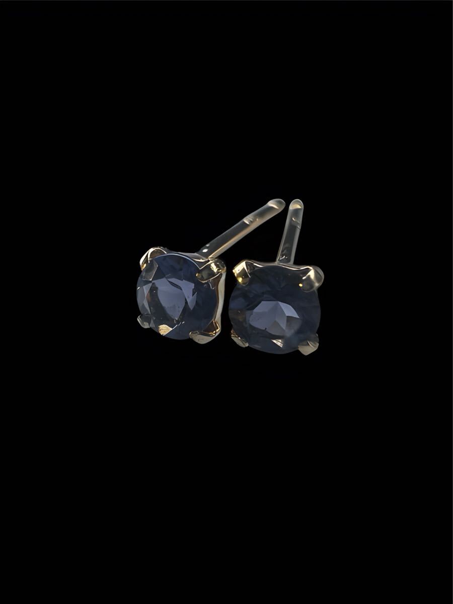 幻想的なスミレ色に近いブルーカラー(青紫色)が魅力的かつ幻想的な、アイオライトを一粒ピアスに仕立てました!