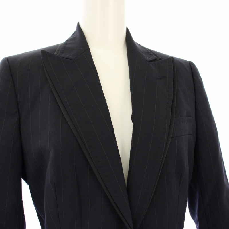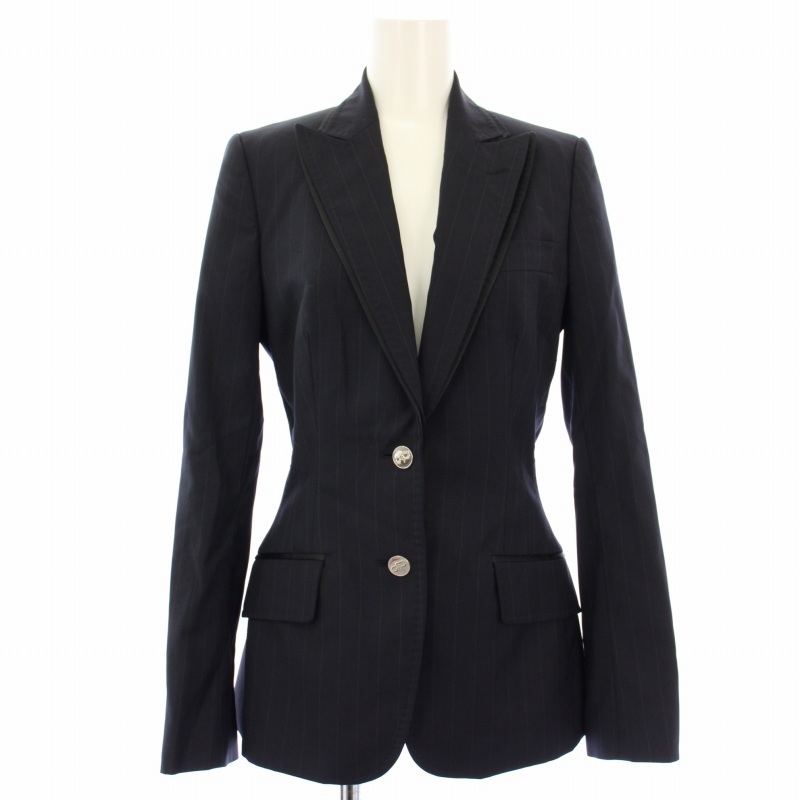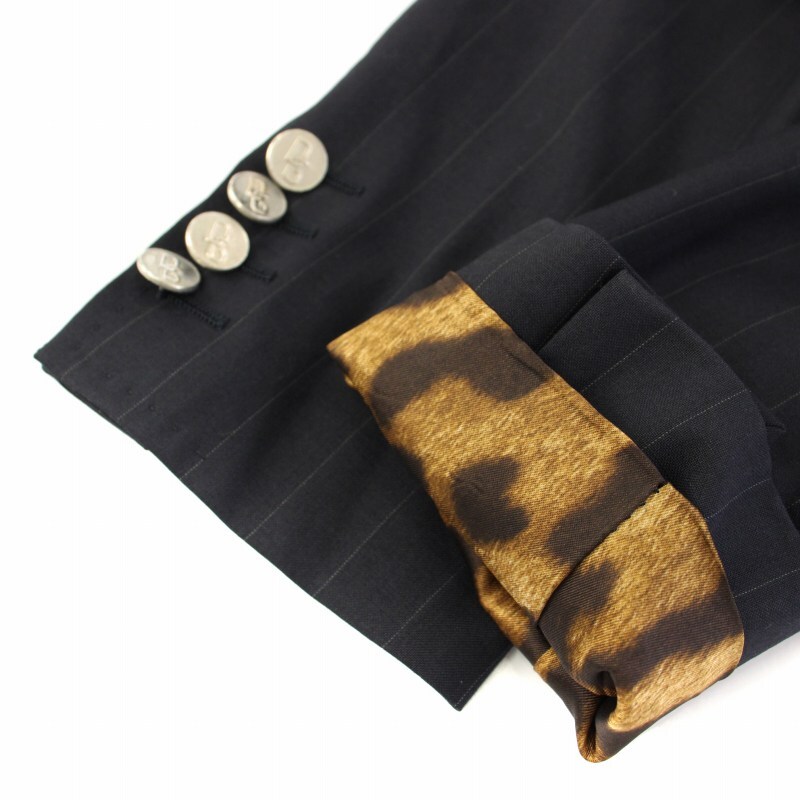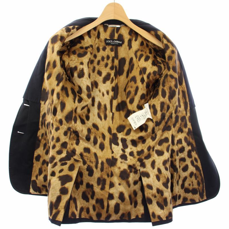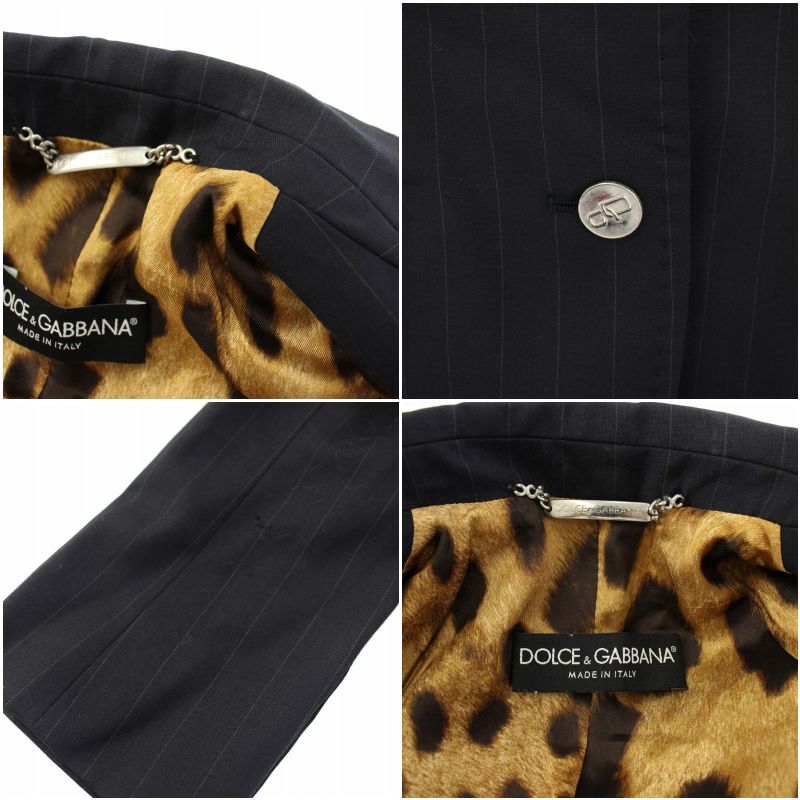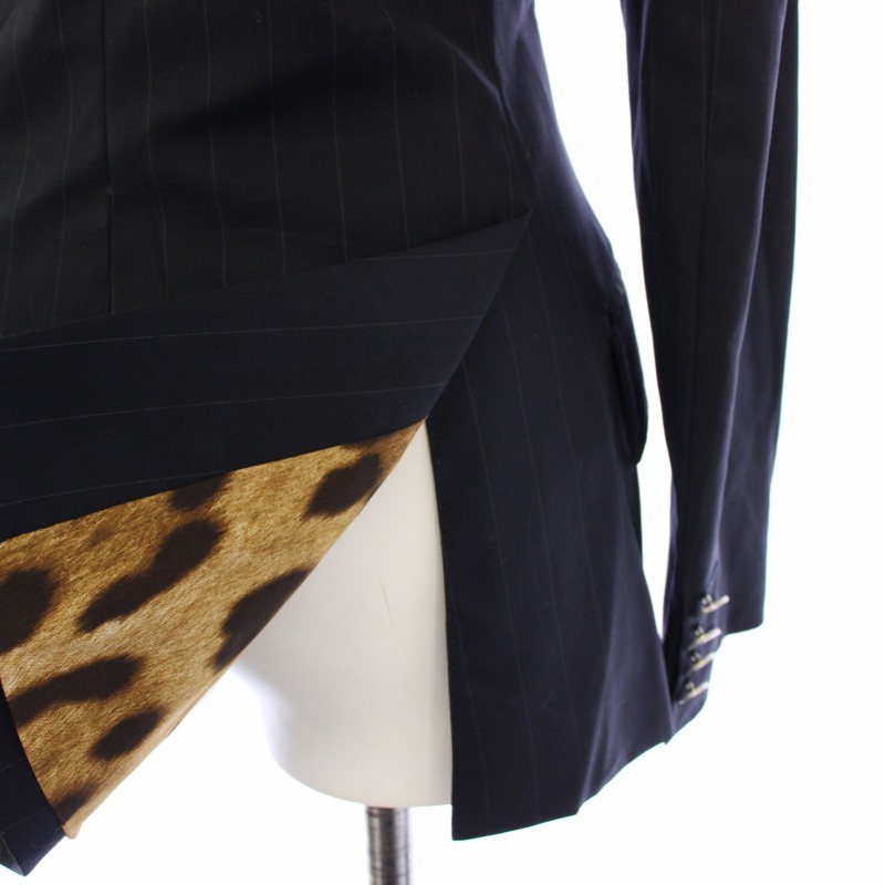ドルチェ&ガッバーナ ドルガバ DOLCE&GABBANA テーラードジャケット ストライプ 裏地ヒョウ柄 レオパード 38 紺 F1088T /TK レディース