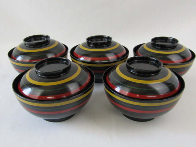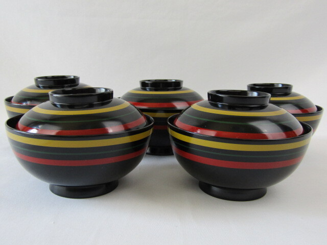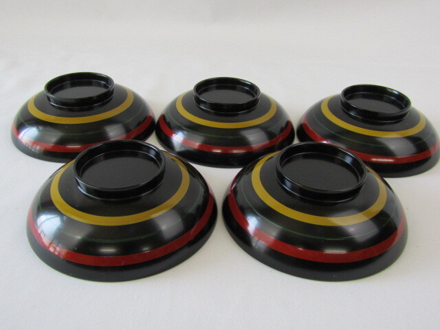 【 Y 】◇ 木製 漆器 独楽塗 利休丸椀 5客 Y5-0427◇