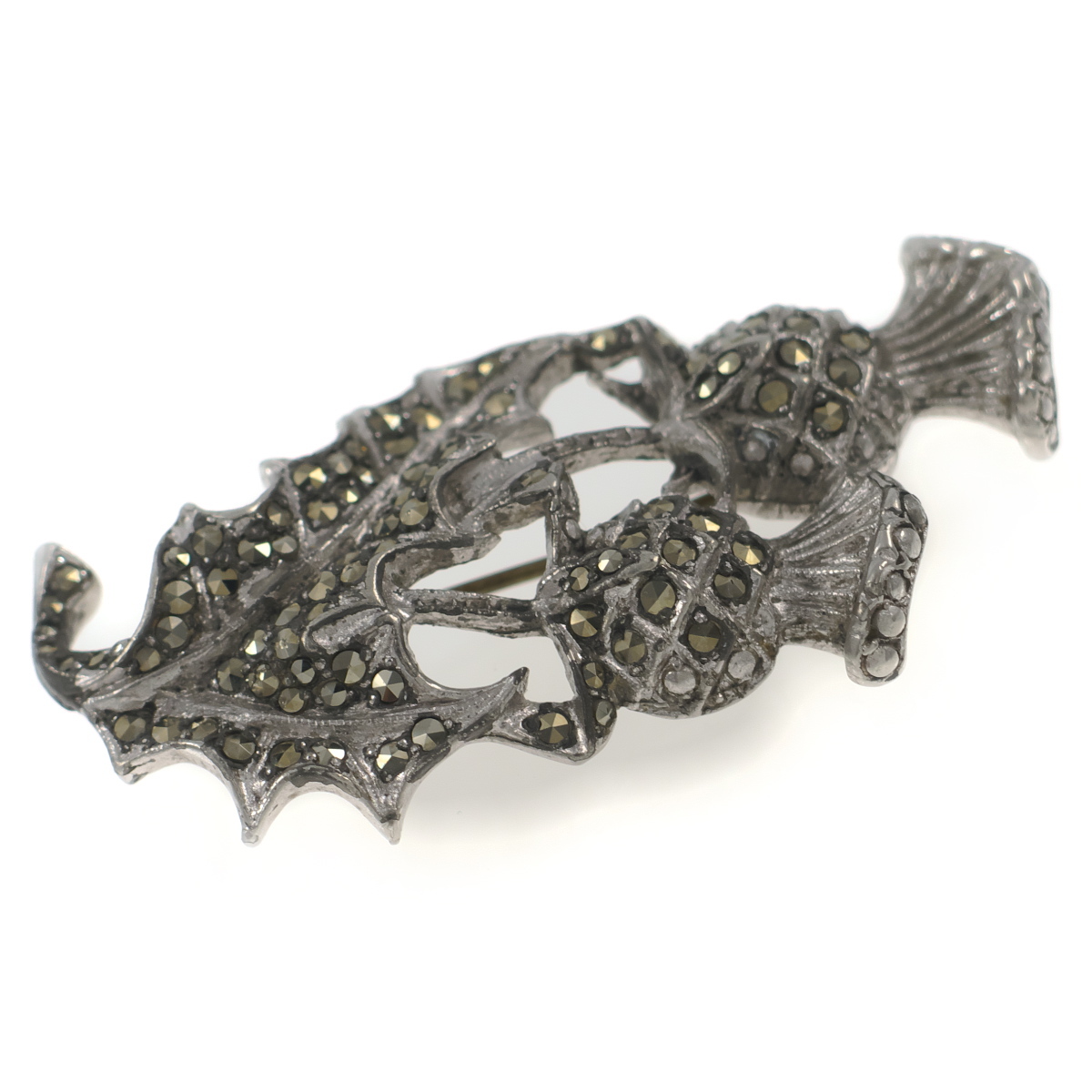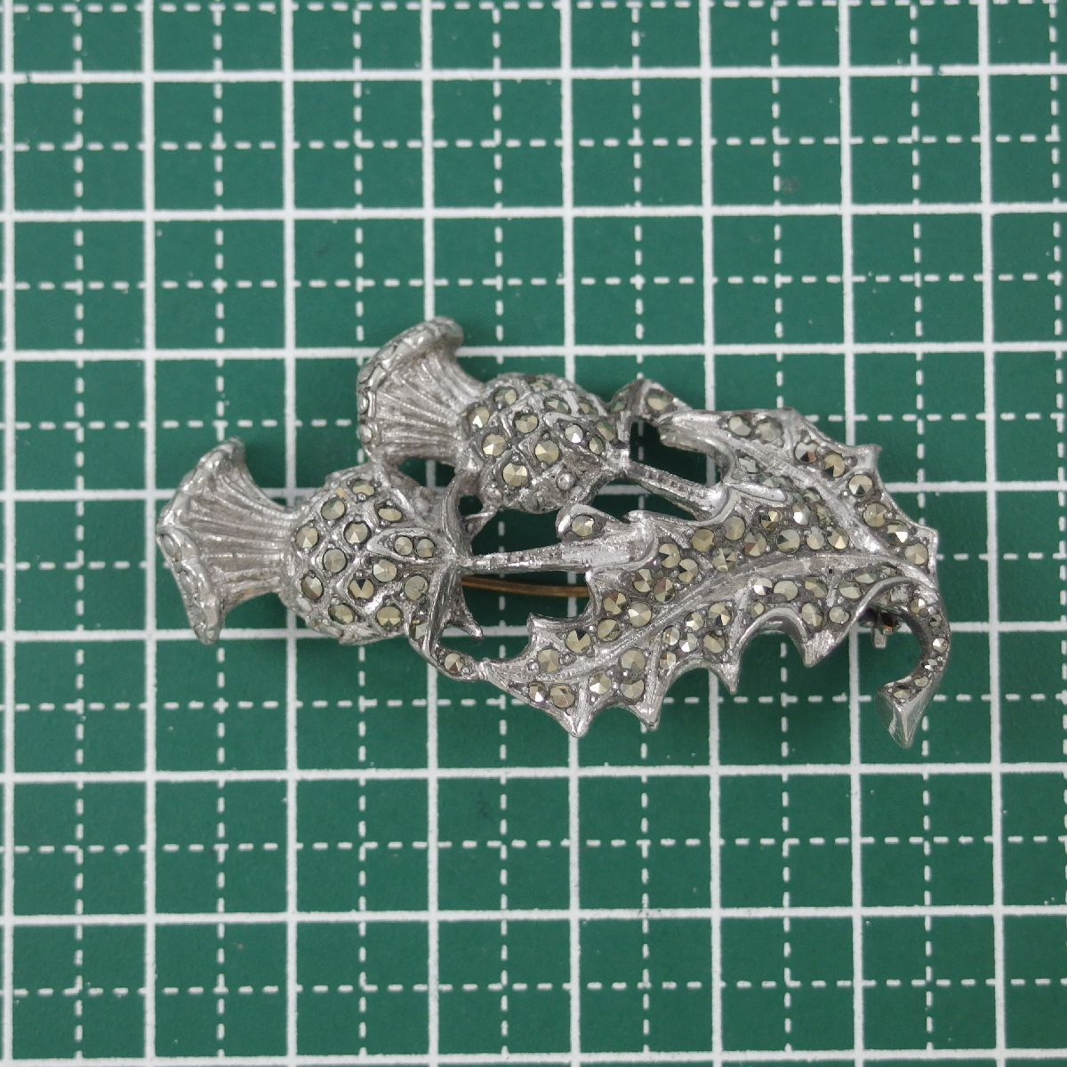 UK3835◆ アザミの花 マーカサイト的ラインストーン フラワーモチーフ ◆ ヴィンテージブローチ ◆ イギリス ケルト 英国 ◆