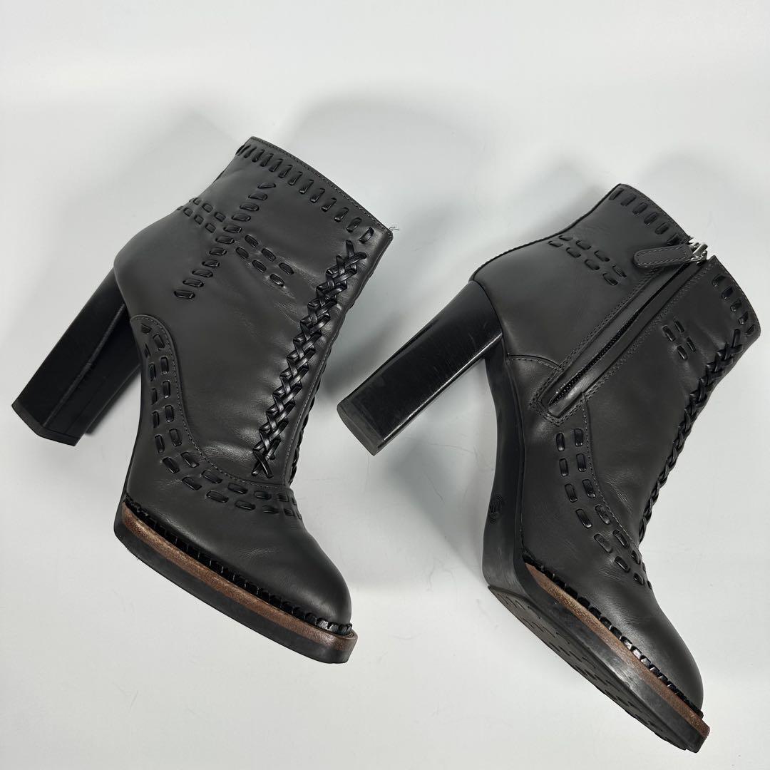 TOD’S 本革 レザー ステッチ ヒール ショートブーツ サイドジップ