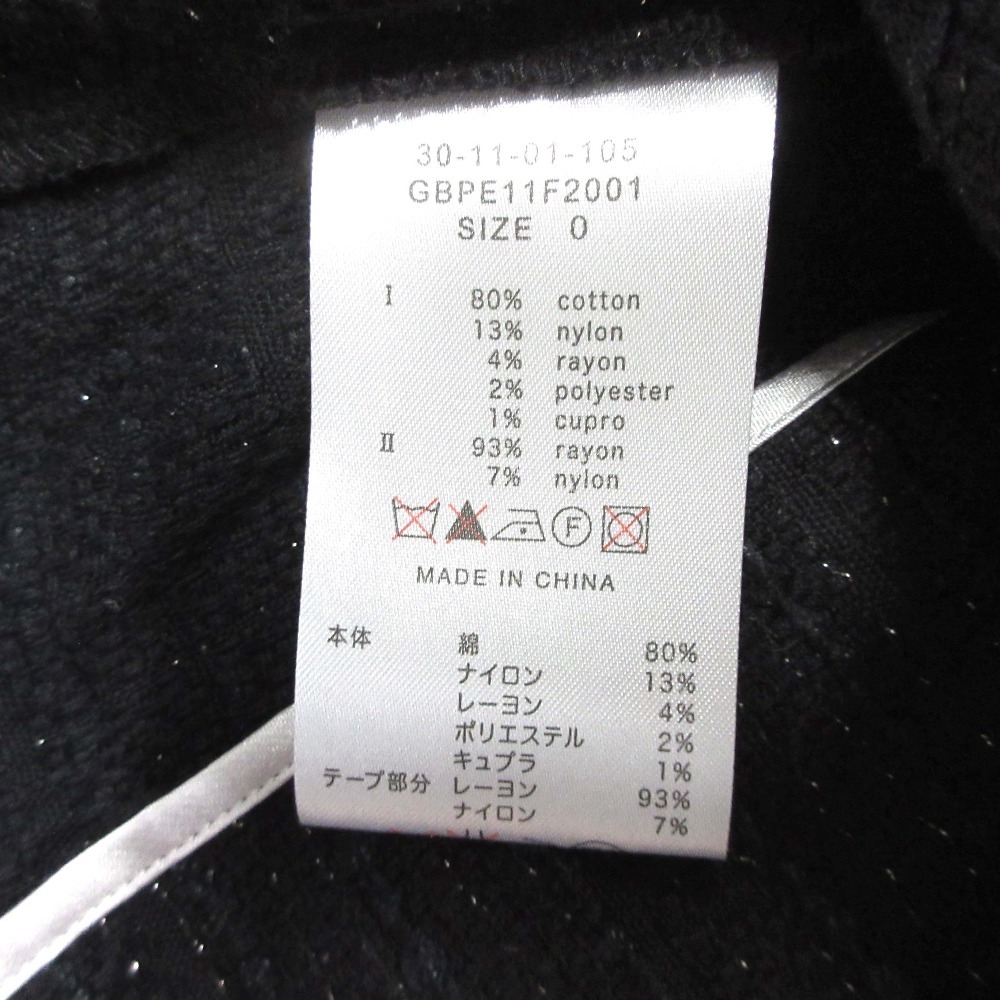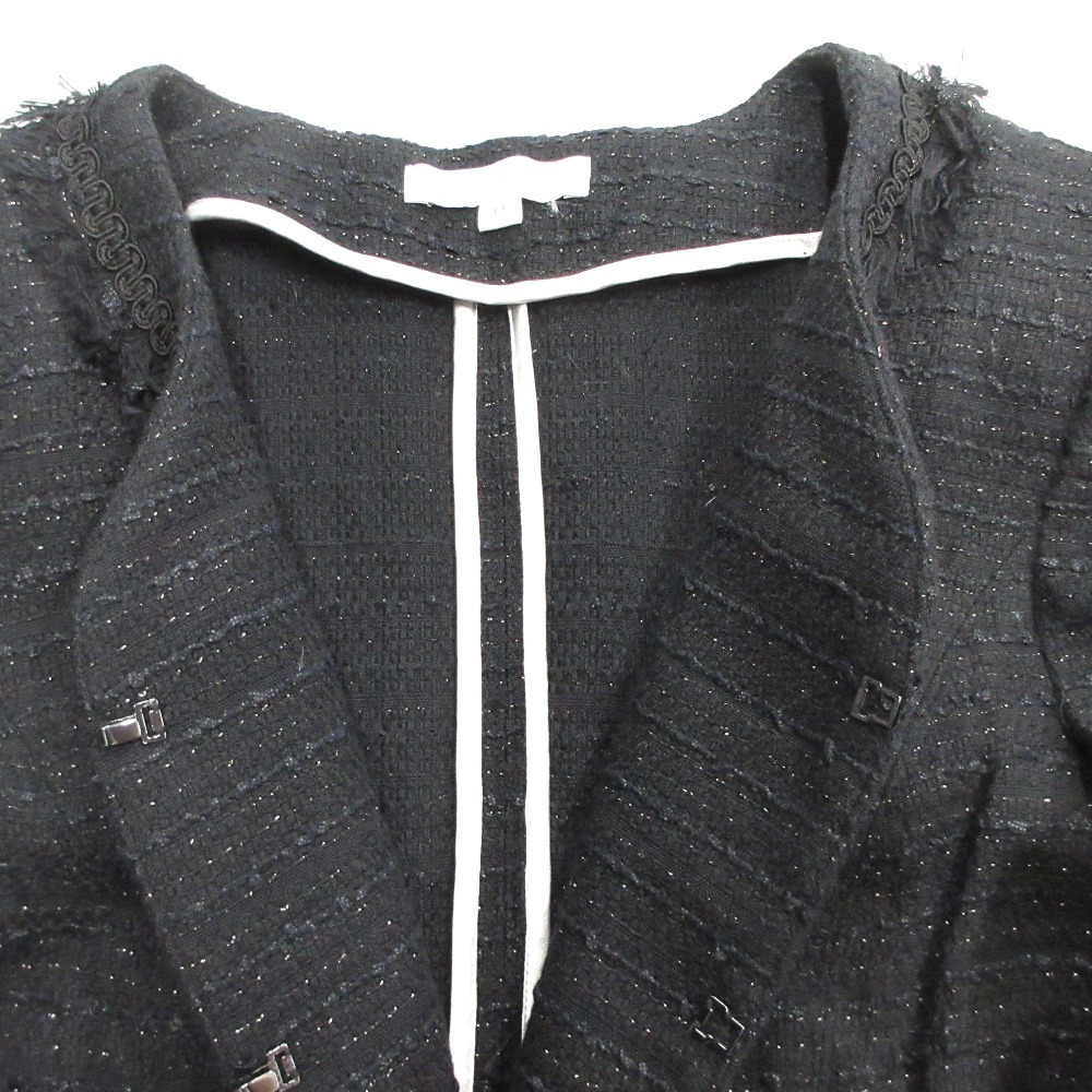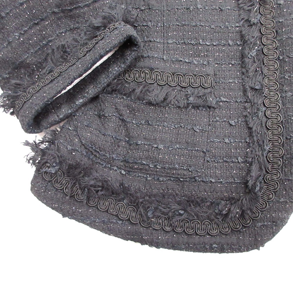 商品名:NARA CAMICIE ナラカミーチェ ツイード ノーカラー ジャケット ブレザー フリンジ 肩パッド セレモニー SIZE0 黒 ブラック