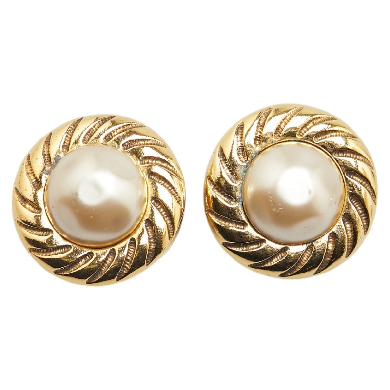 シャネル ラウンド イヤリング ゴールド メッキ フェイクパール レディース CHANEL 【中古】